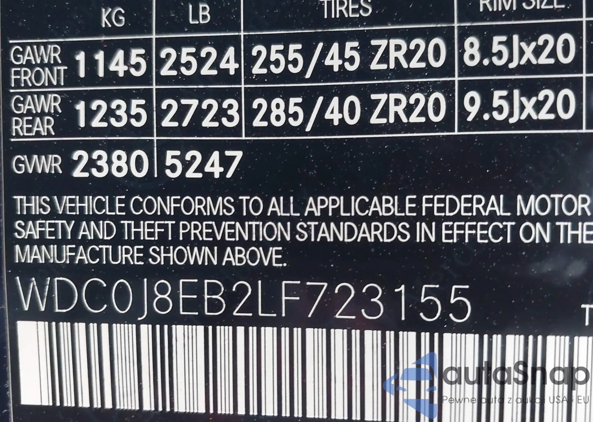 VIN: WDC0J8EB2LF723155