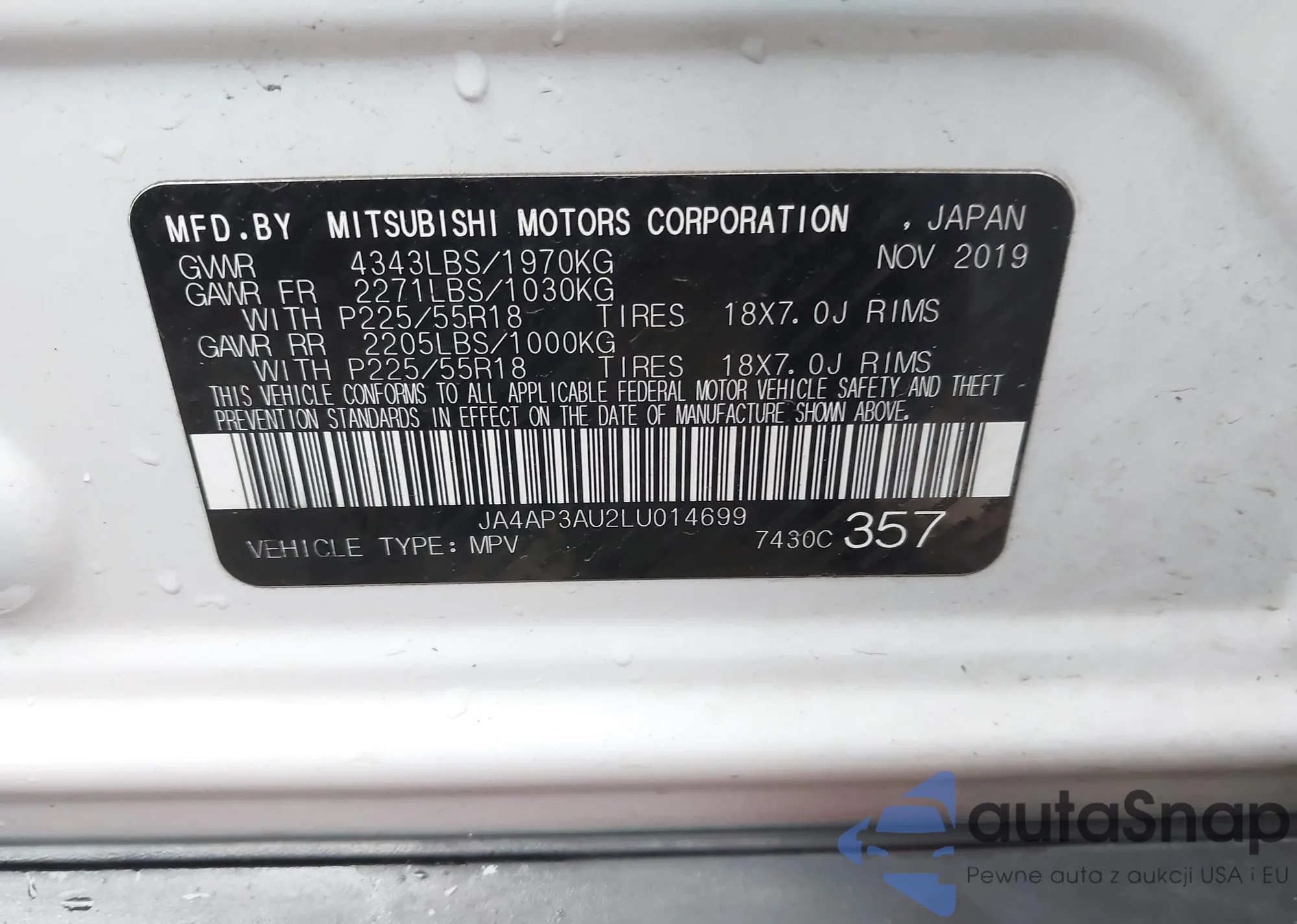 • VIN: JA4AP3AU2LU014699