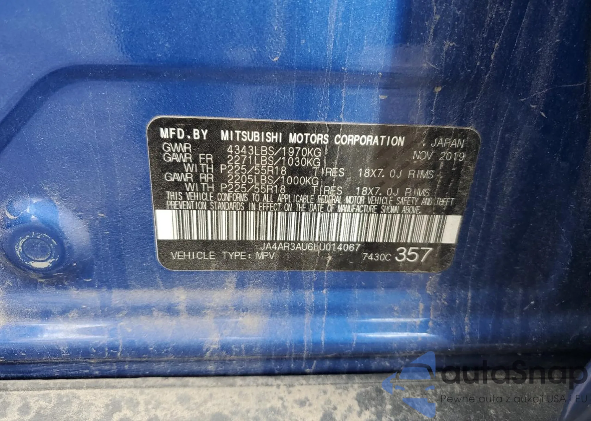 Автомобиль Mitsubishi Outlander 2020 (VIN JA4AR3AU6LU014067) продаётся непроверенным продавцом. Рекомендуем проверить отчет Carfax и подтвердить возможность регистрации перед покупкой.