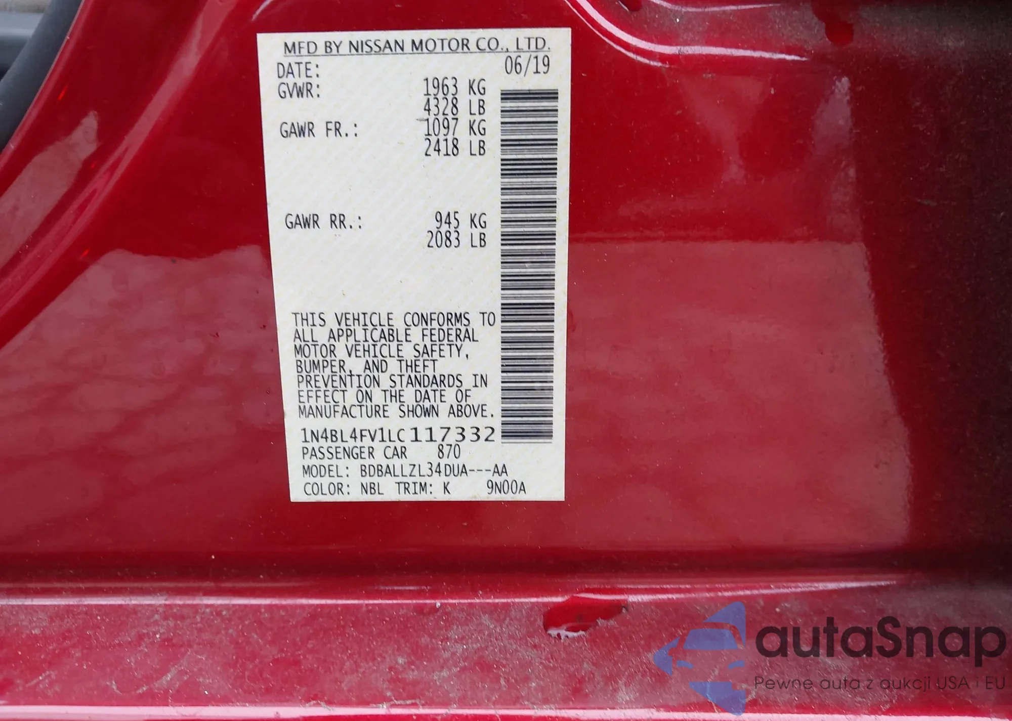 VIN: 1N4BL4FV1LC117332