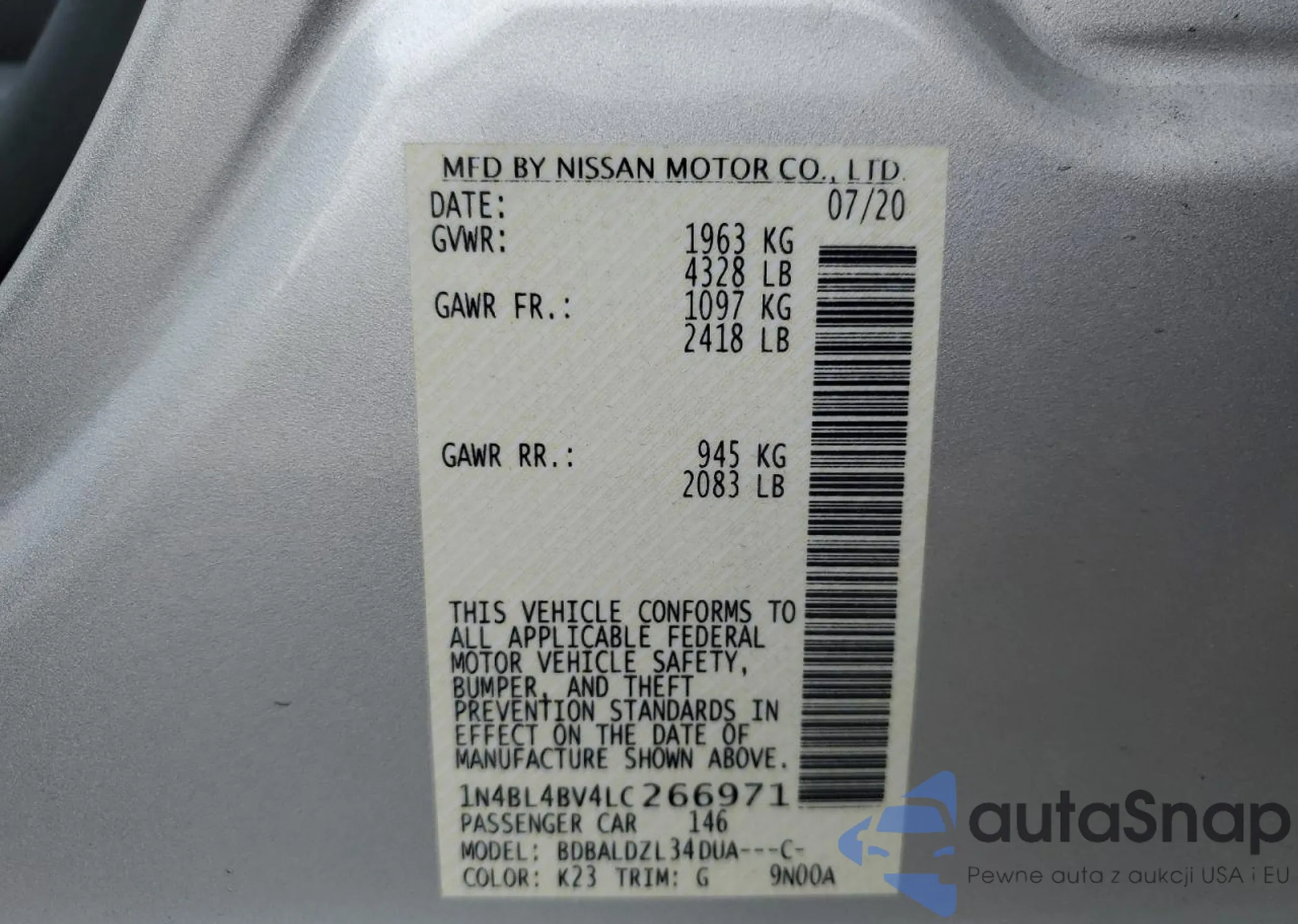 VIN: 1N4BL4BV4LC266971