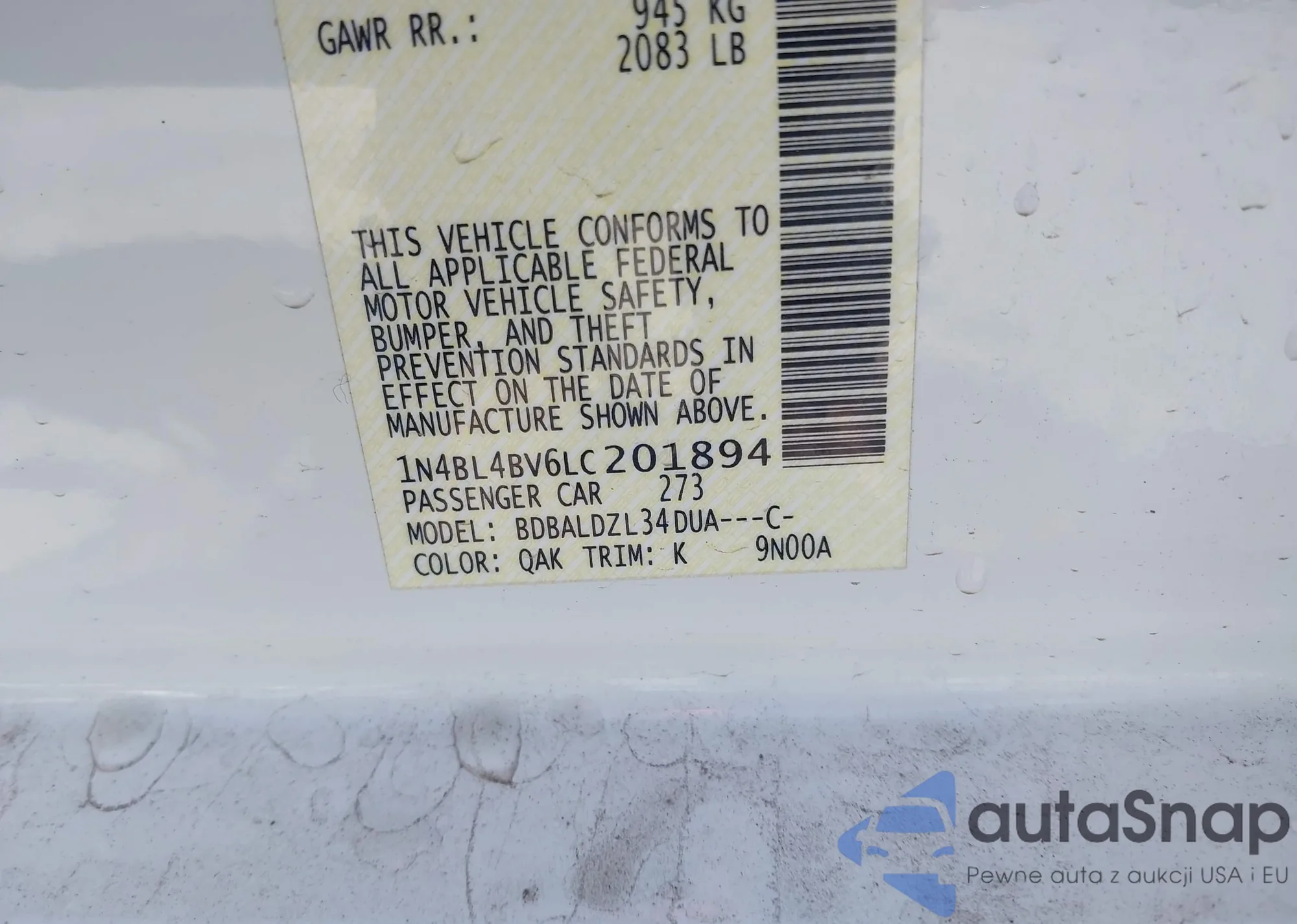 VIN: 1N4BL4BV6LC201894