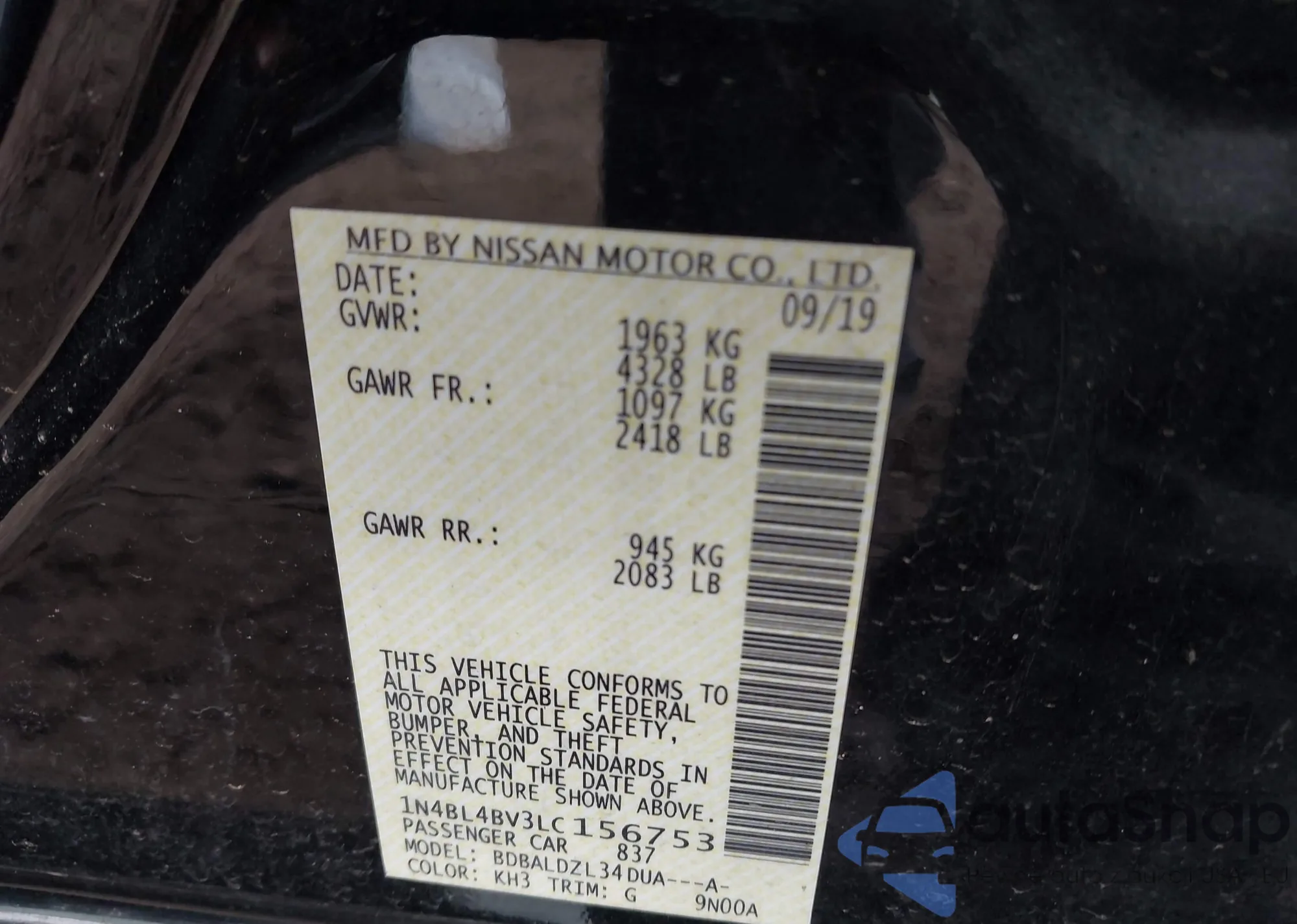 VIN: 1N4BL4BV3LC156753