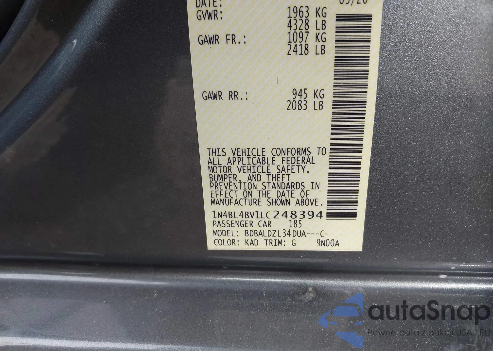 Автомобиль Nissan Altima 2020 (VIN 1N4BL4BV1LC248394) ранее не участвовал в торгах. Документы чистые, пробег соответствует или ниже среднего по рынку. Продаётся страховой компанией — рекомендуем покупку. Доставка в порт займет около 6–8 недель.
