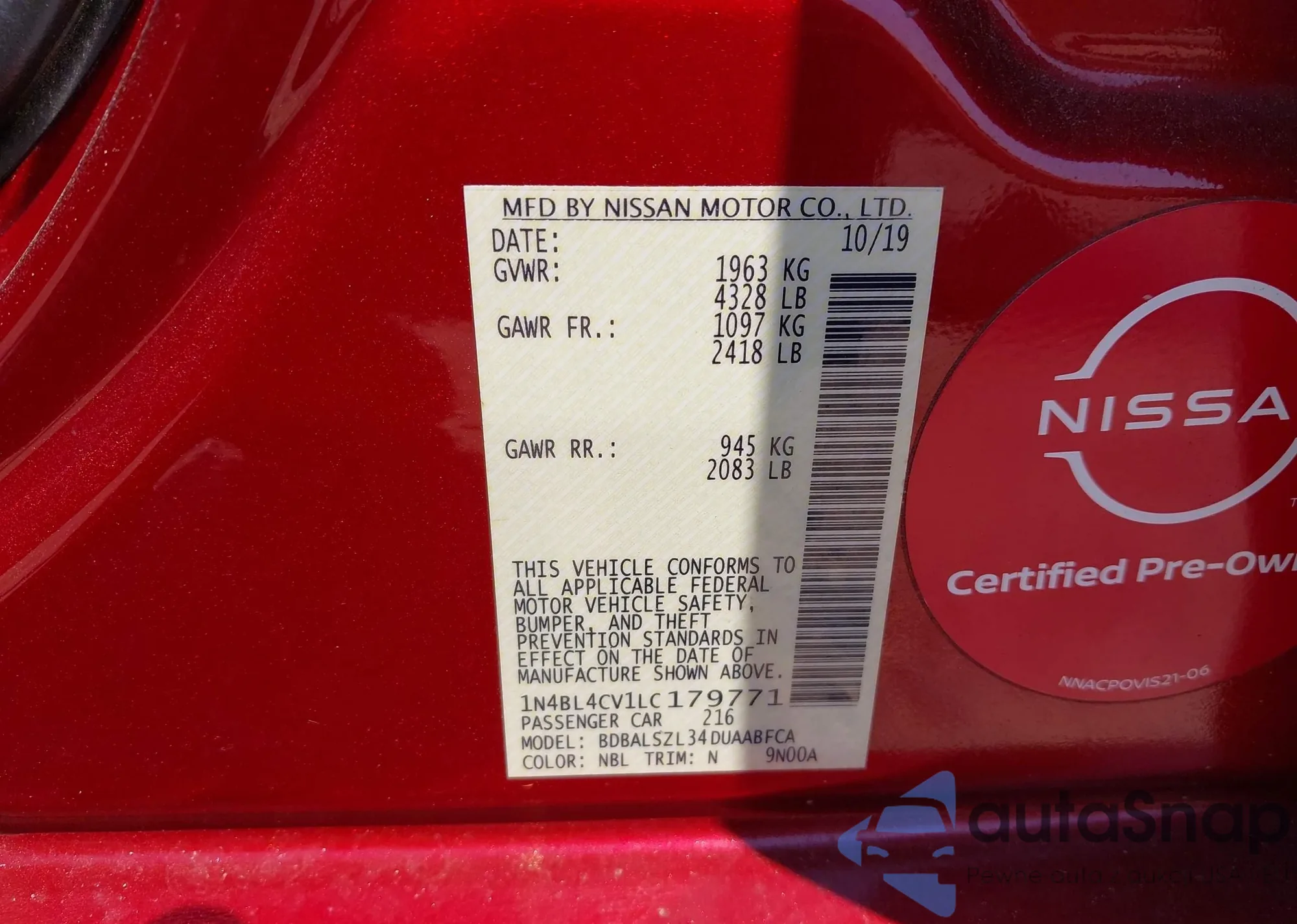 VIN: 1N4BL4CV1LC179771