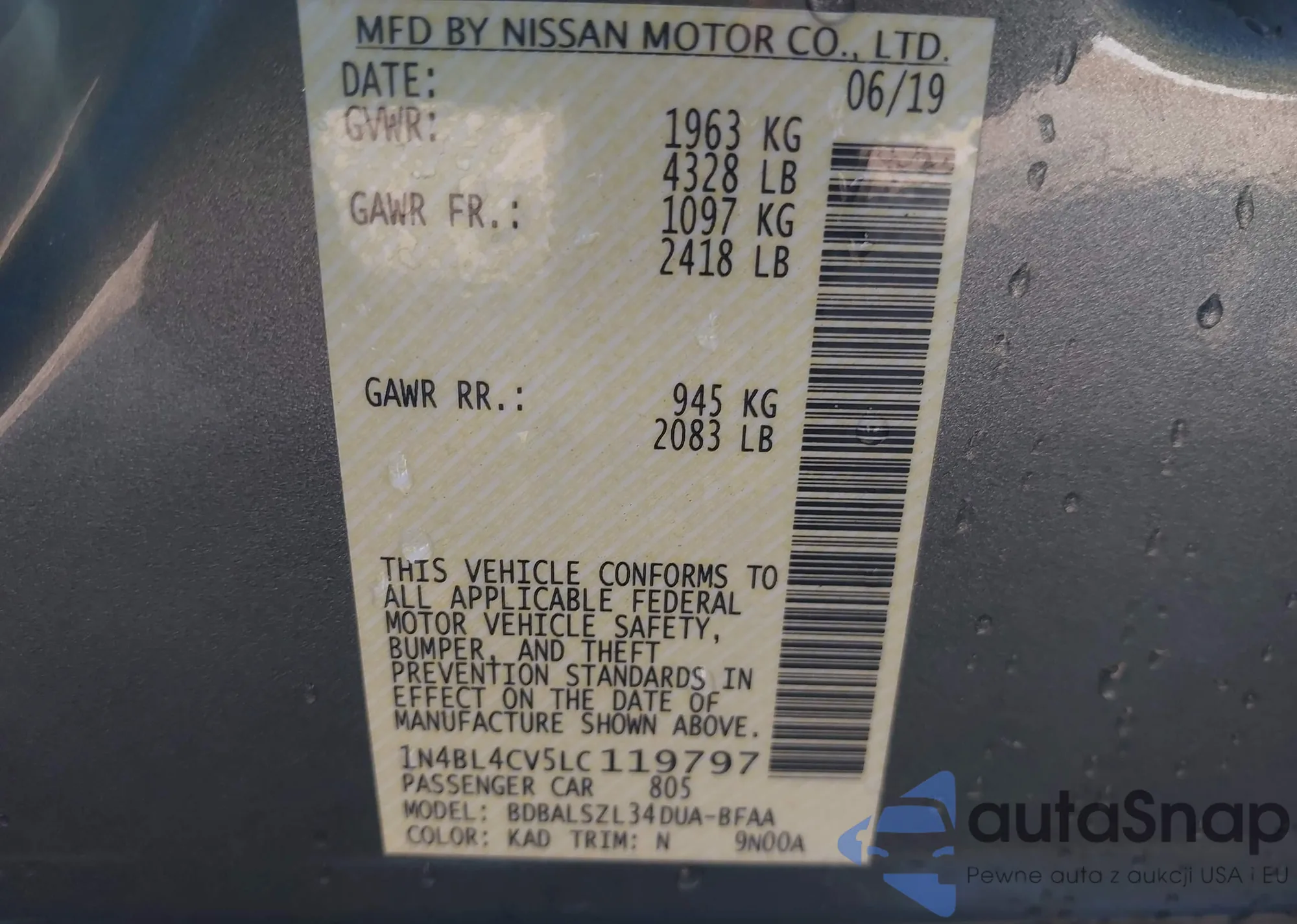 VIN: 1N4BL4CV5LC119797