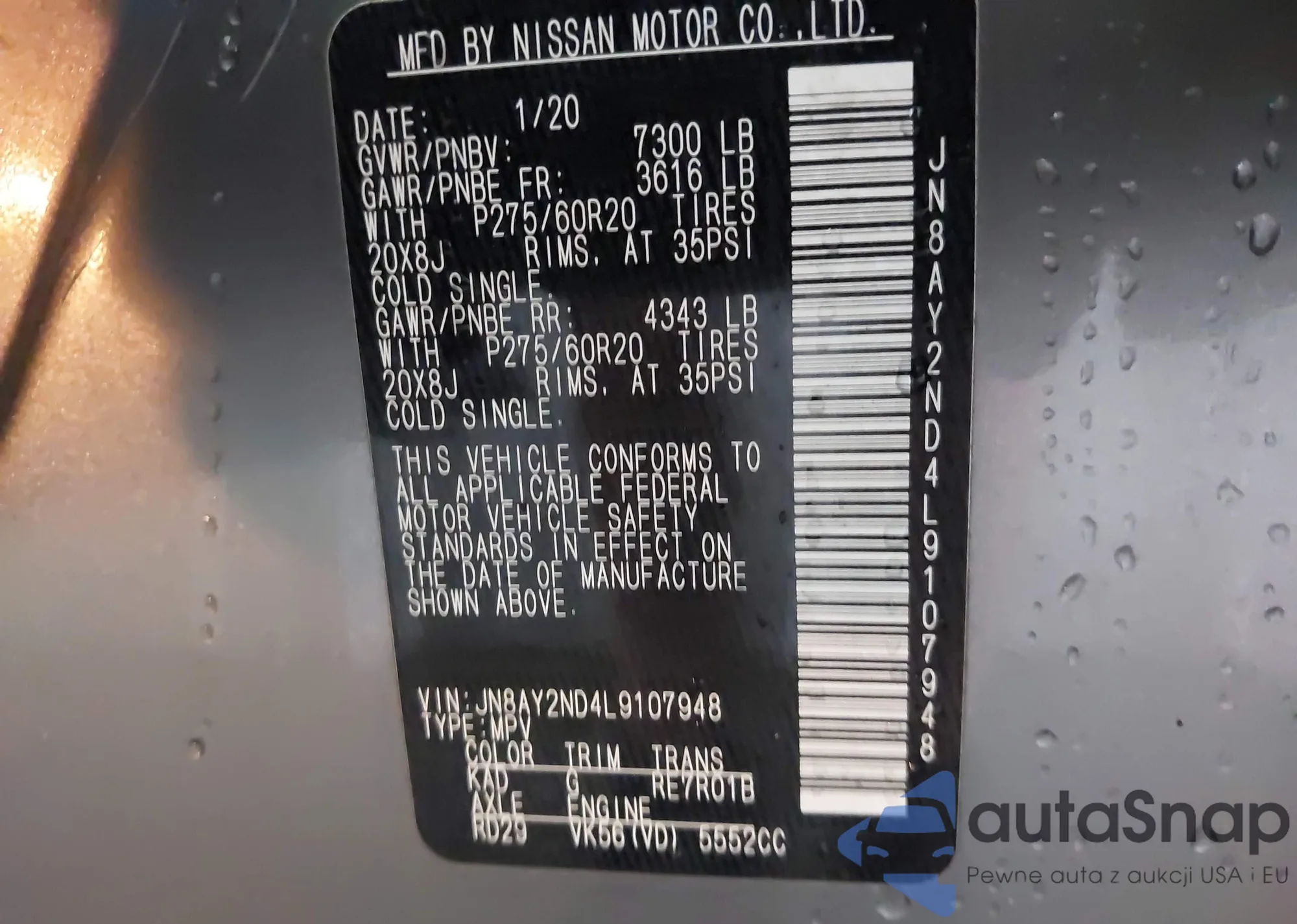 VIN: JN8AY2ND4L9107948