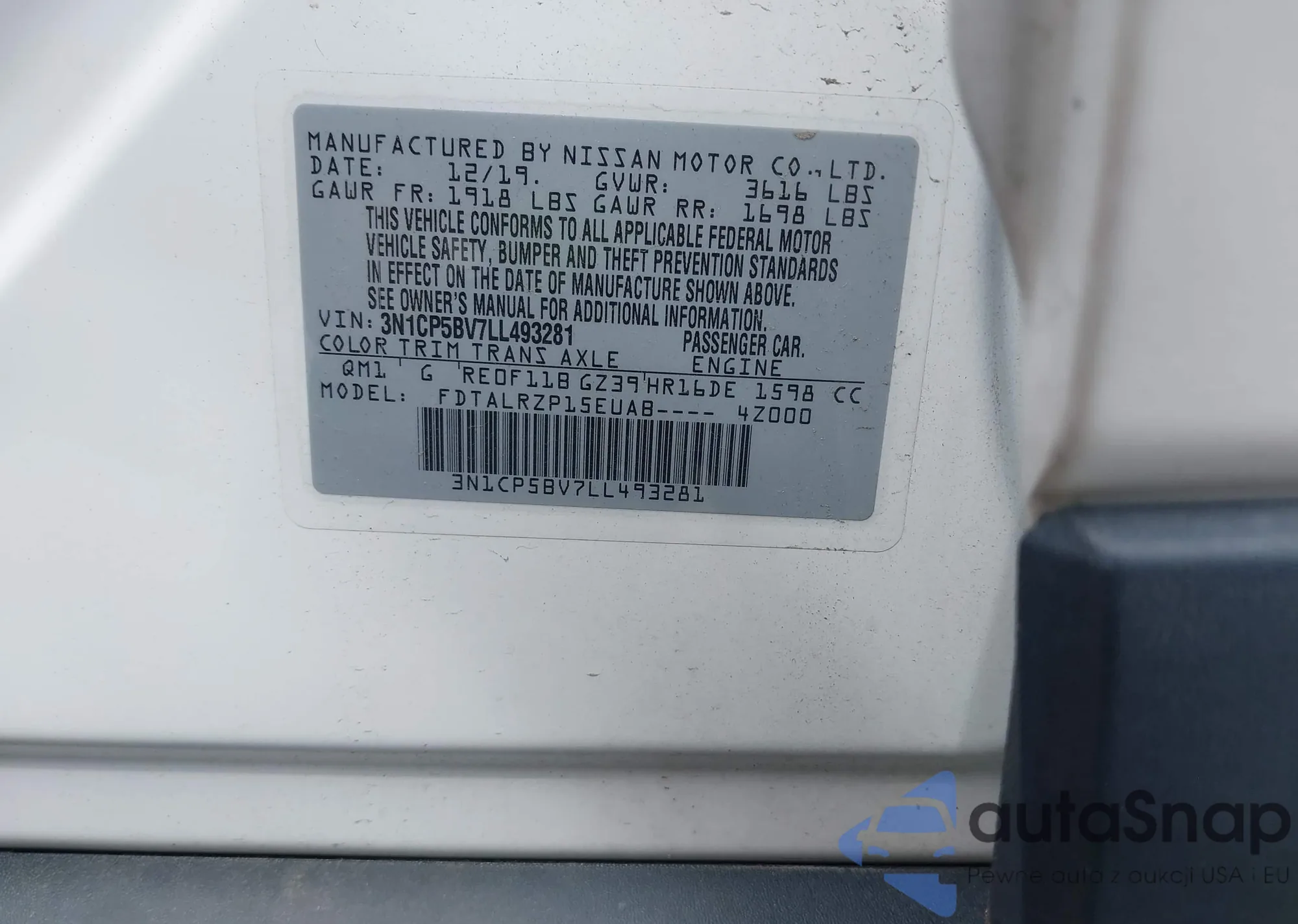 VIN: 3N1CP5BV7LL493281