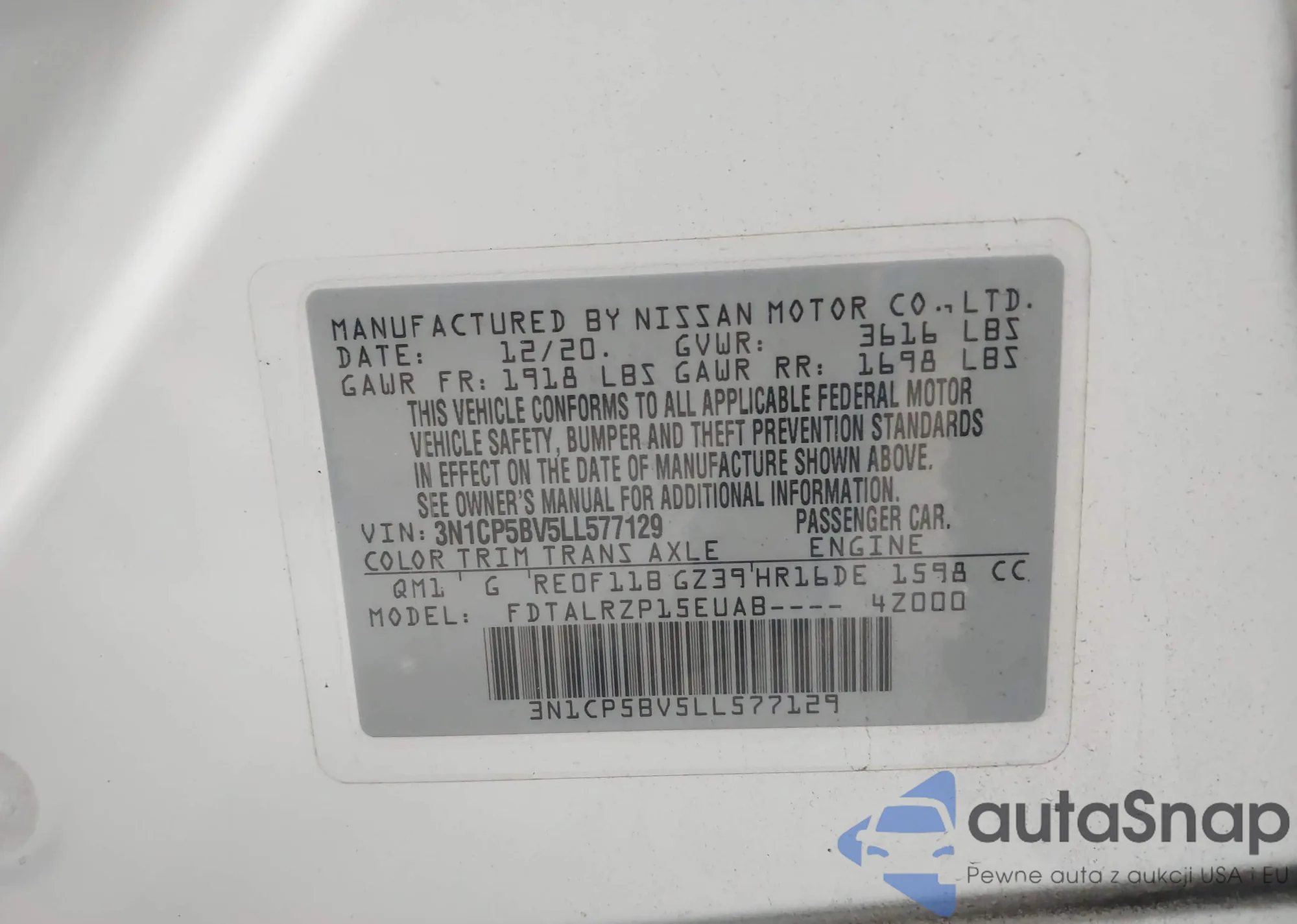 VIN: 3N1CP5BV5LL577129