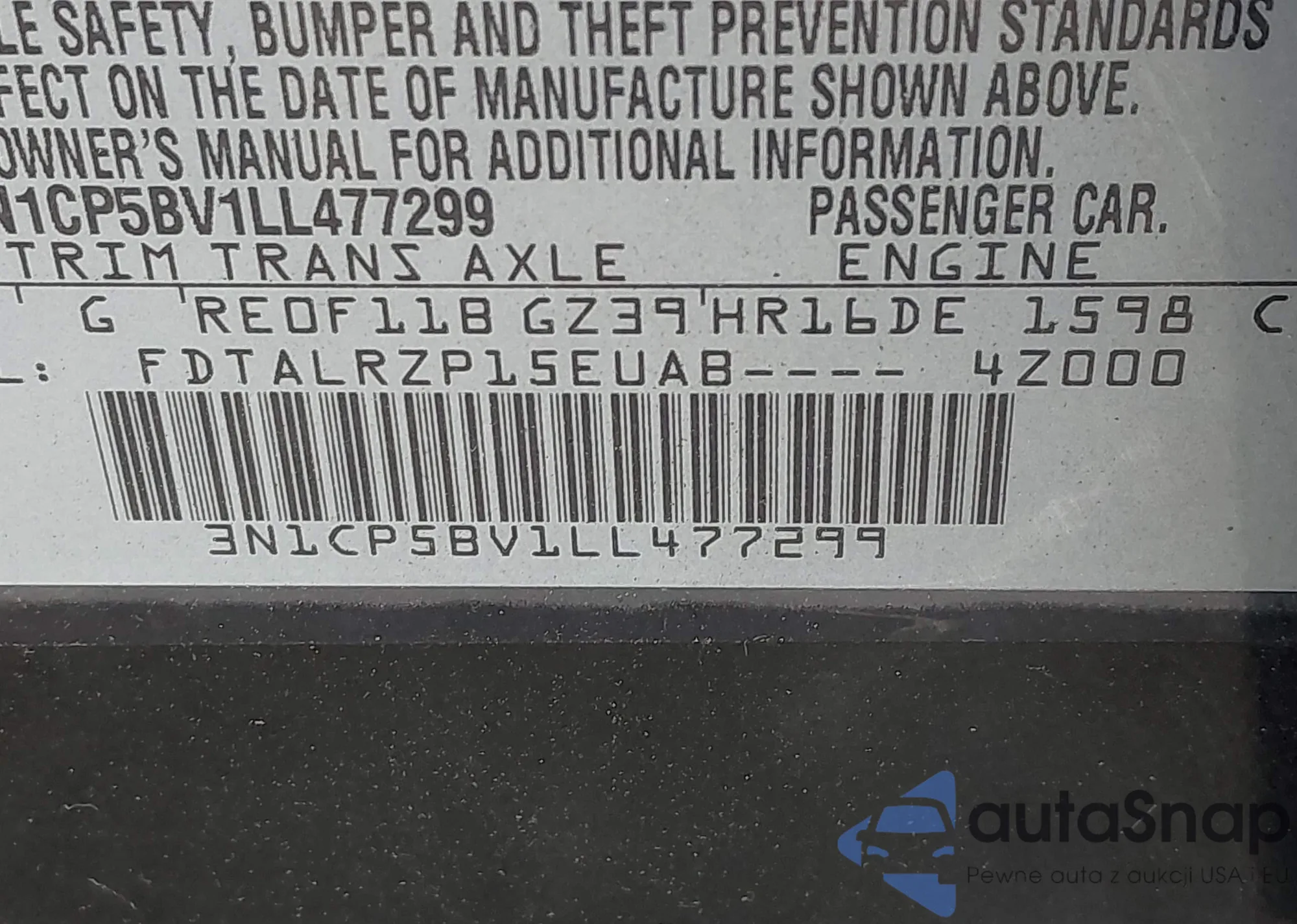 VIN: 3N1CP5BV1LL477299