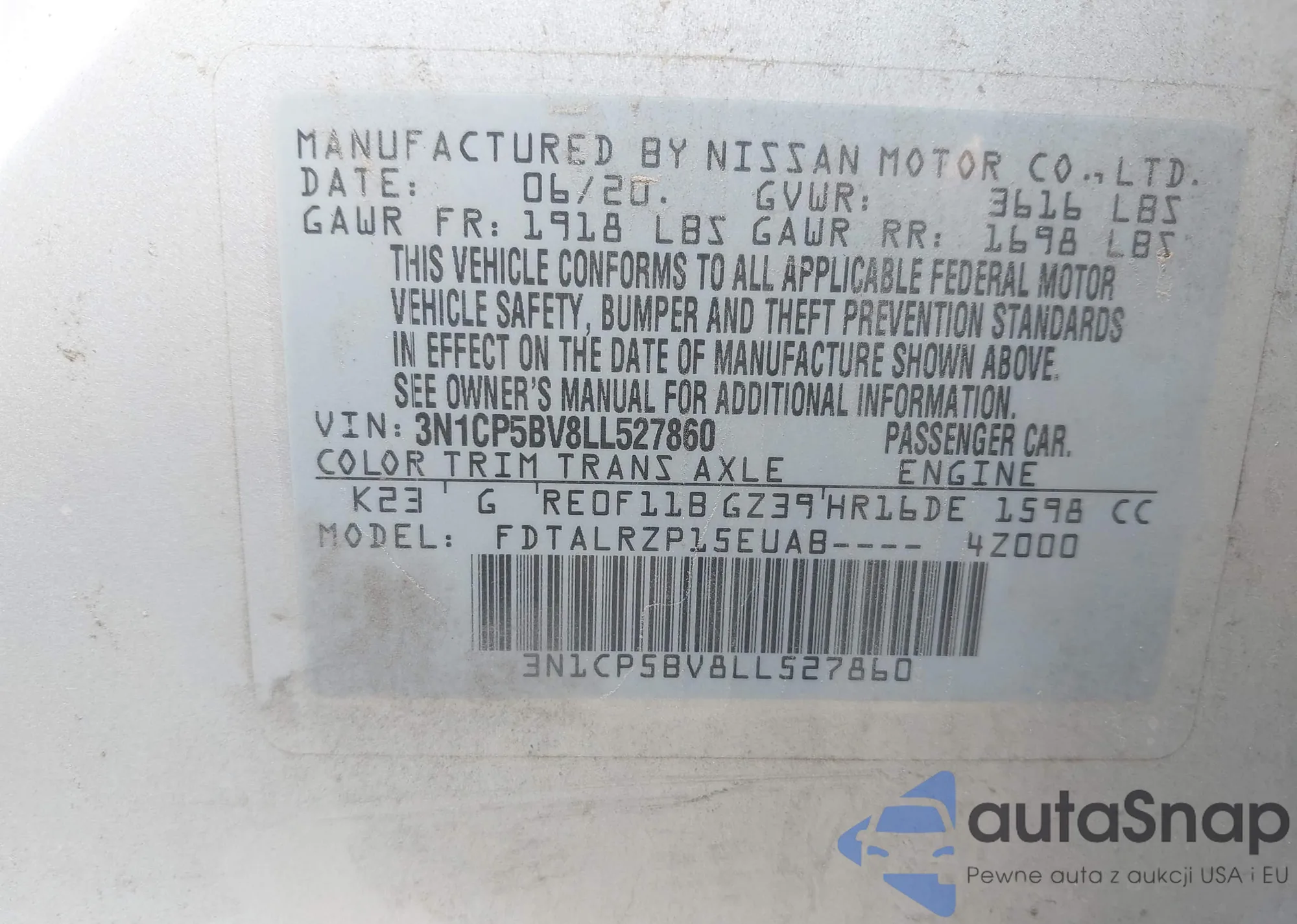 • VIN: 3N1CP5BV8LL527860