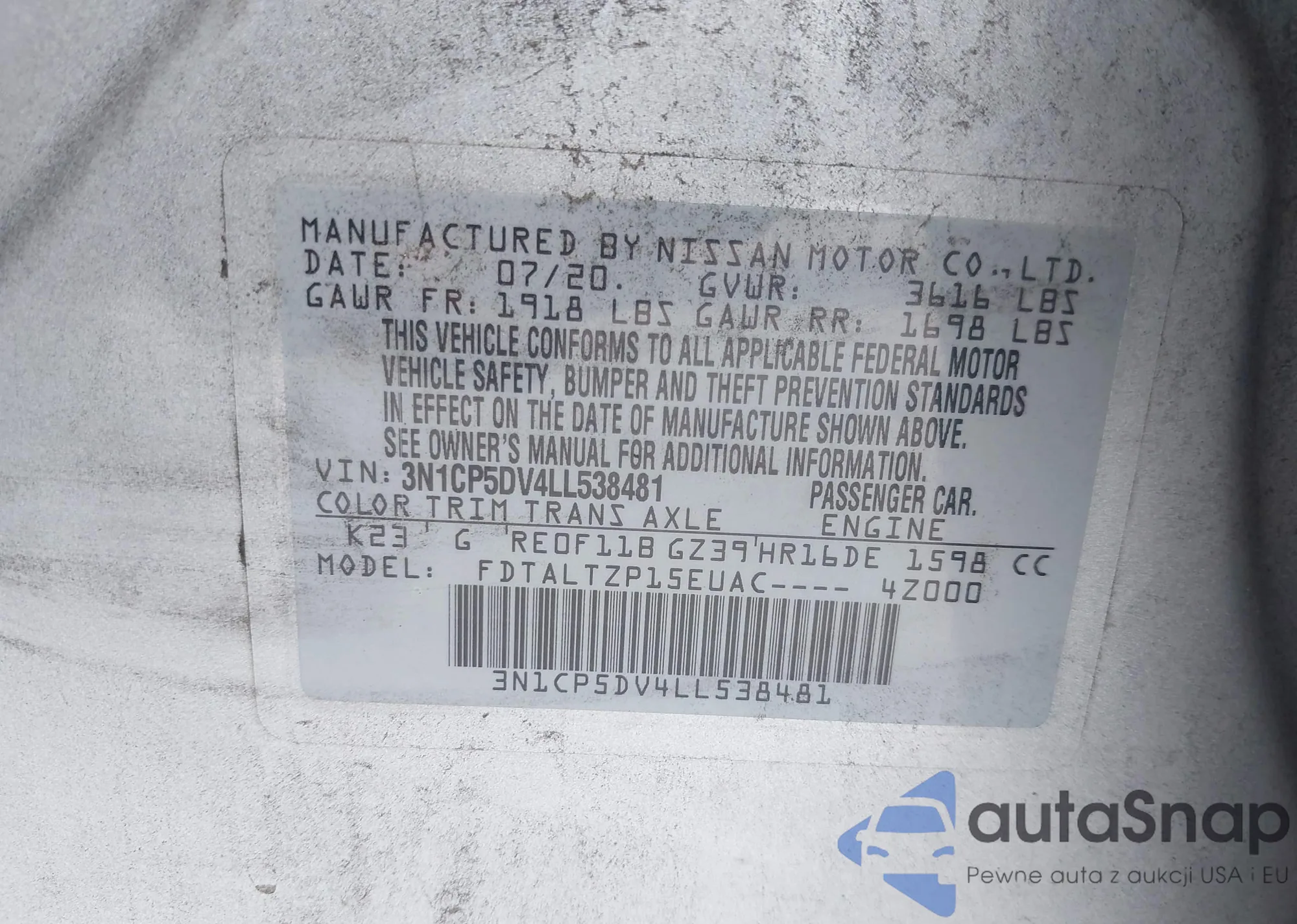 VIN: 3N1CP5DV4LL538481