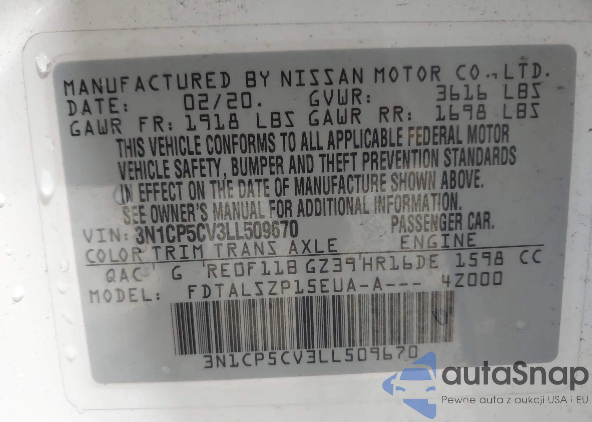 VIN: 3N1CP5CV3LL509670