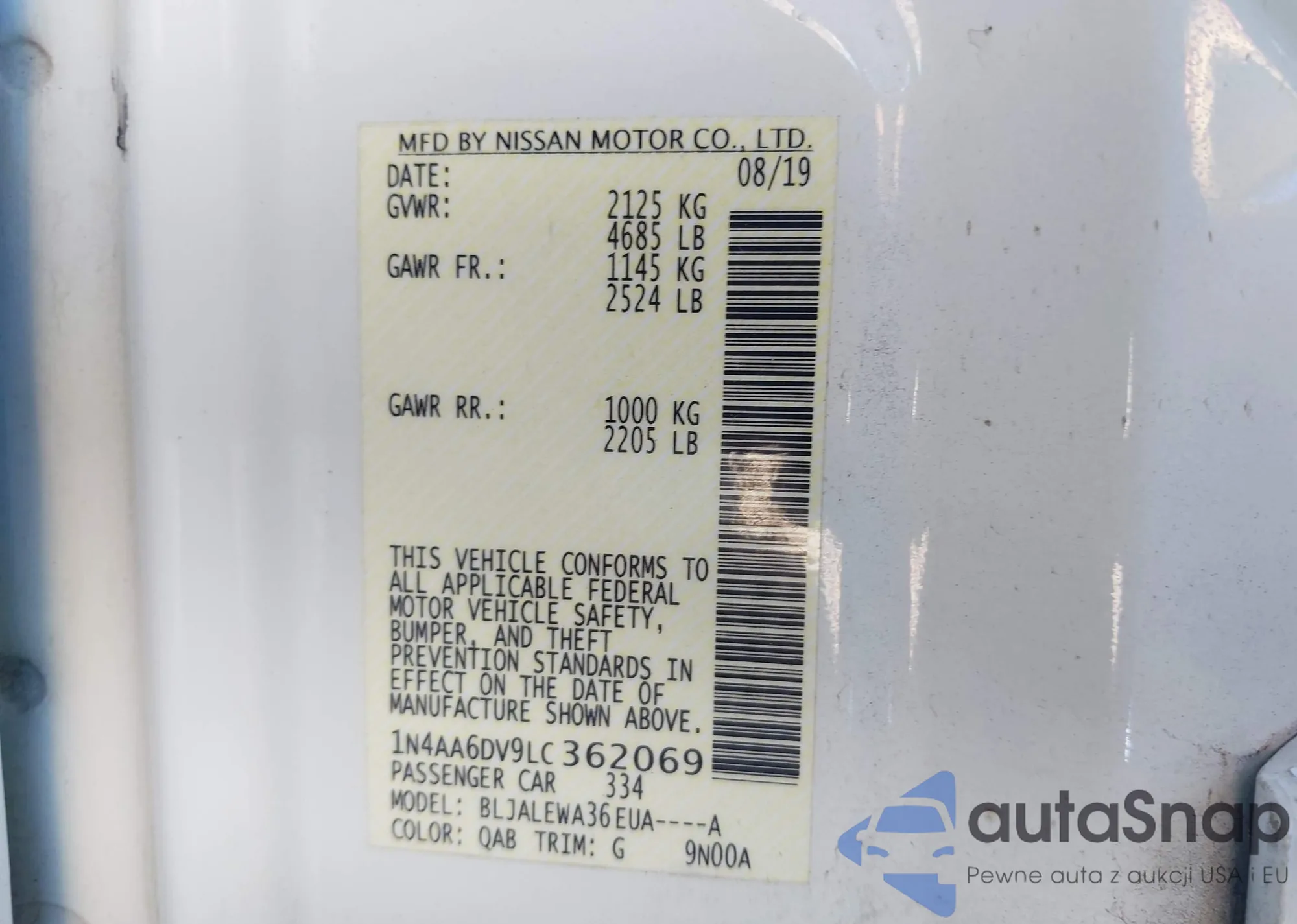 Автомобиль Nissan Maxima 2020 (VIN 1N4AA6DV9LC362069) ранее не участвовал в торгах. Документы чистые, пробег соответствует или ниже среднего по рынку. Продаётся страховой компанией — рекомендуем покупку. Доставка в порт займет около 6–8 недель.