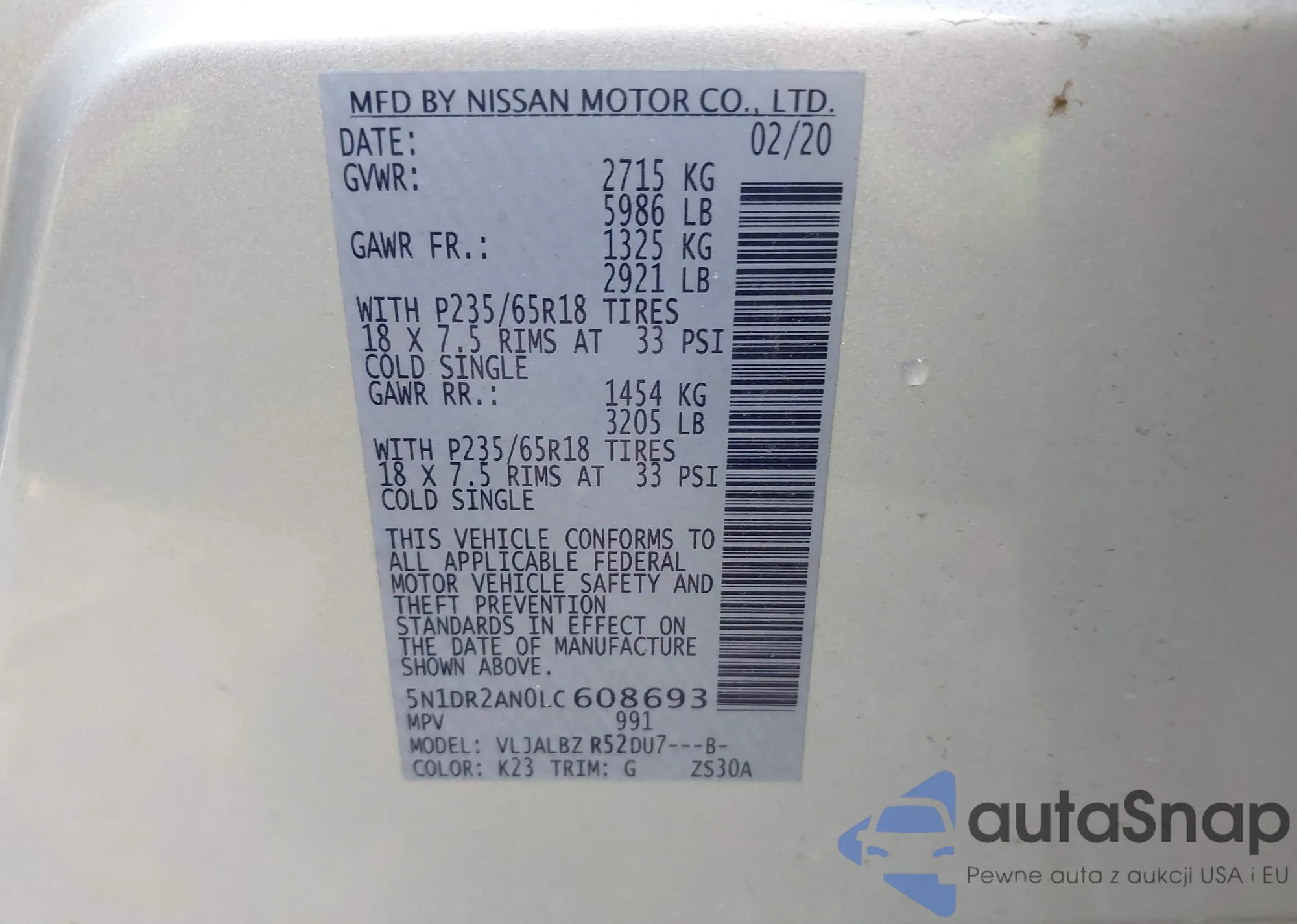 Автомобиль Nissan Pathfinder 2020 (VIN 5N1DR2AN0LC608693) ранее не участвовал в торгах. Документы чистые, пробег соответствует или ниже среднего по рынку. Продаётся страховой компанией — рекомендуем покупку. Доставка в порт займет около 6–8 недель.
