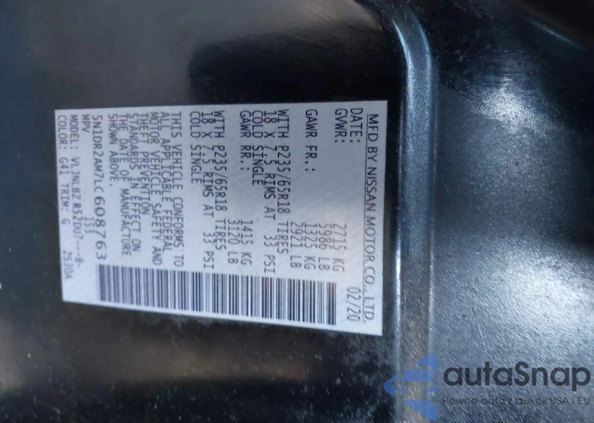 • VIN: 5N1DR2AM7LC608763