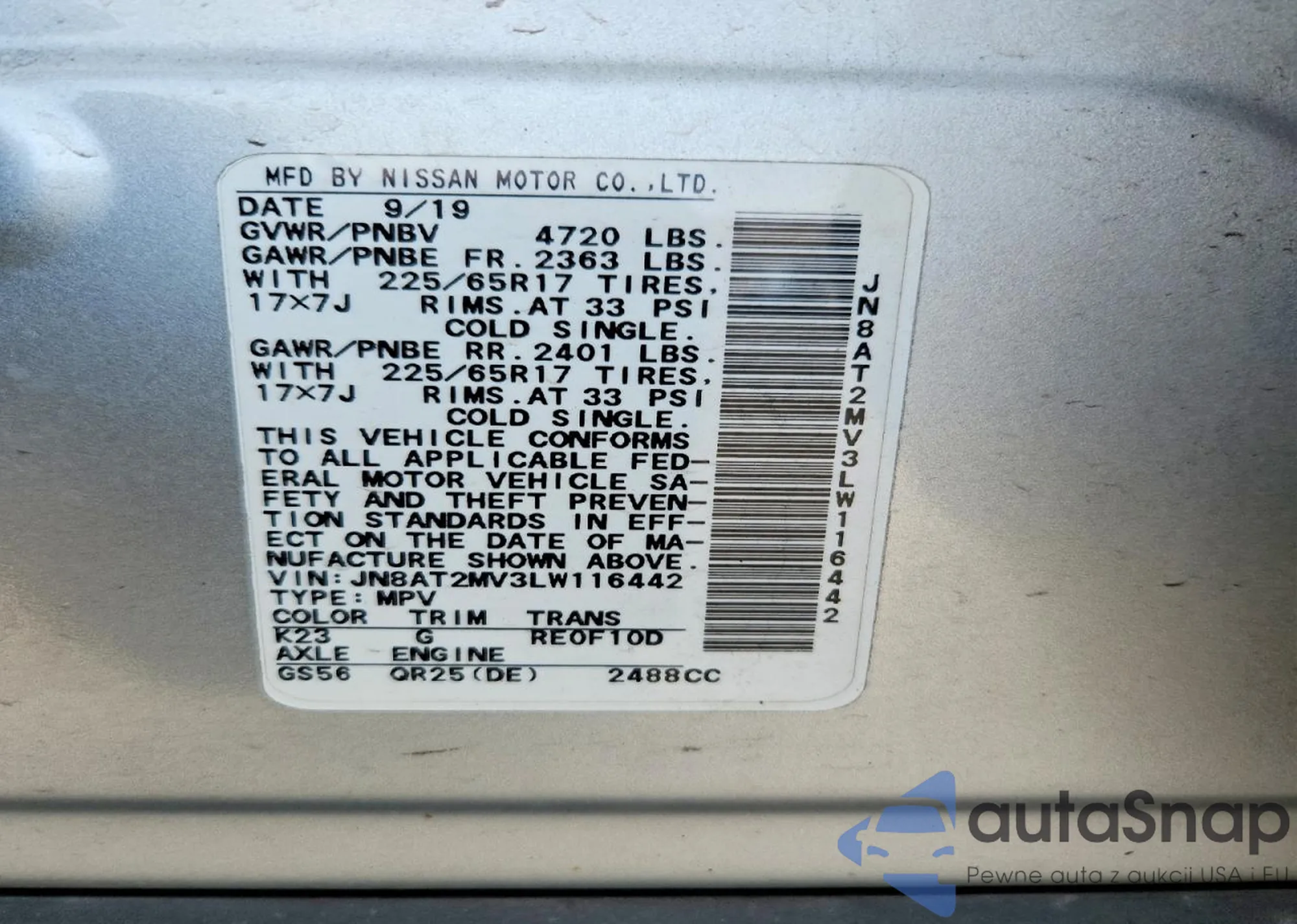 VIN: JN8AT2MV3LW116442