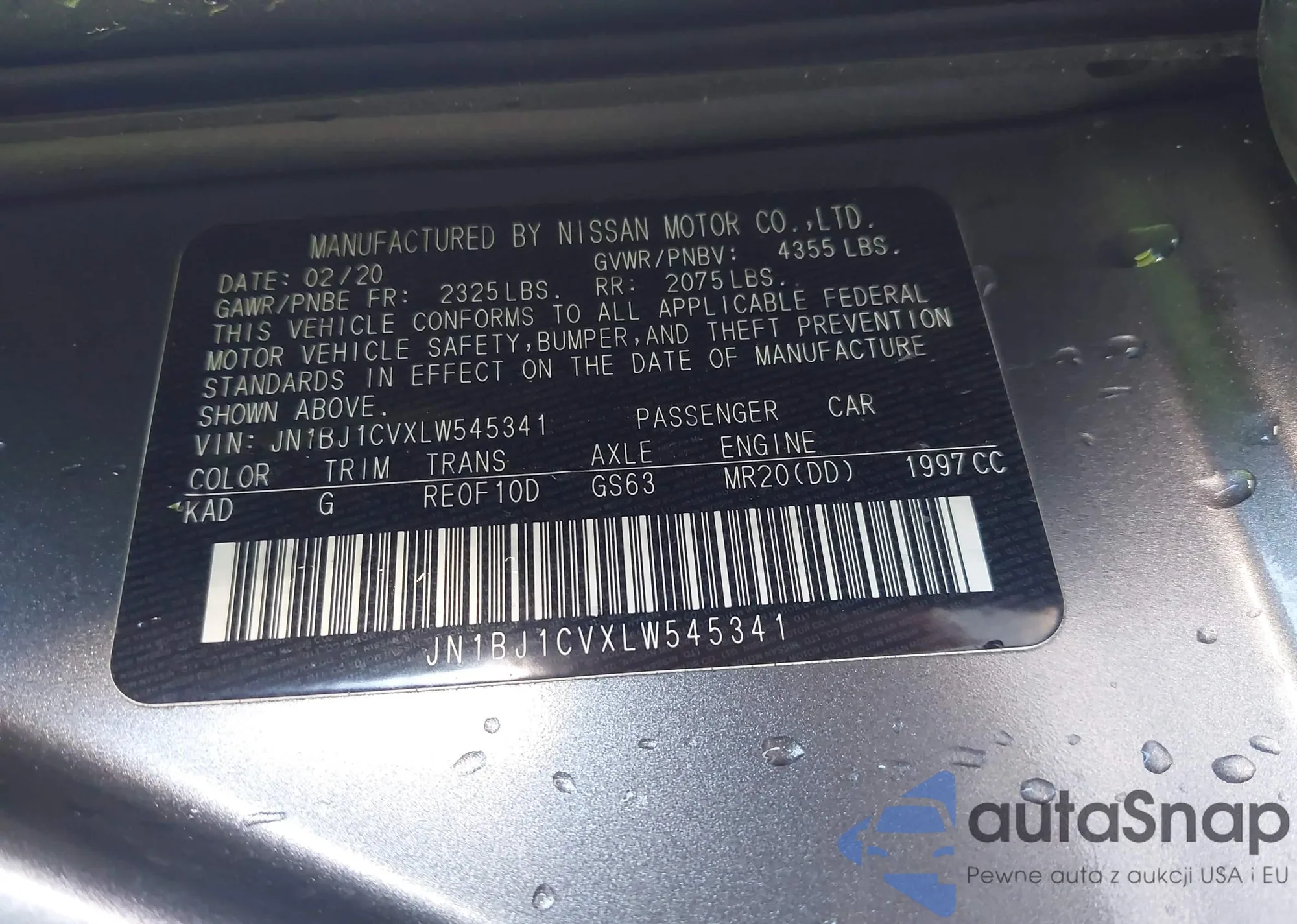 VIN: JN1BJ1CVXLW545341