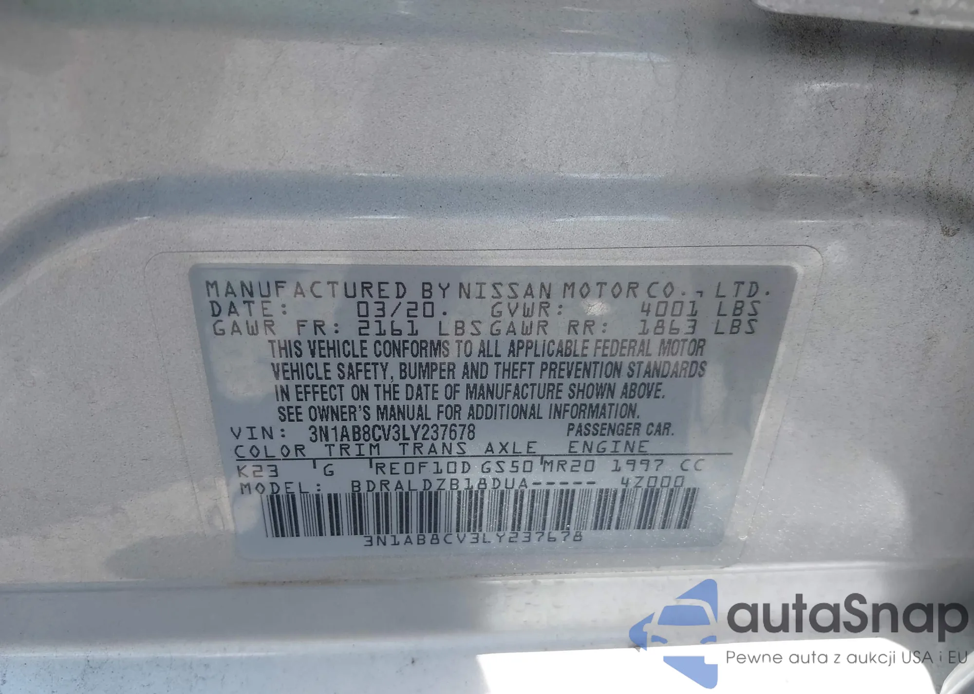 VIN: 3N1AB8CV3LY237678