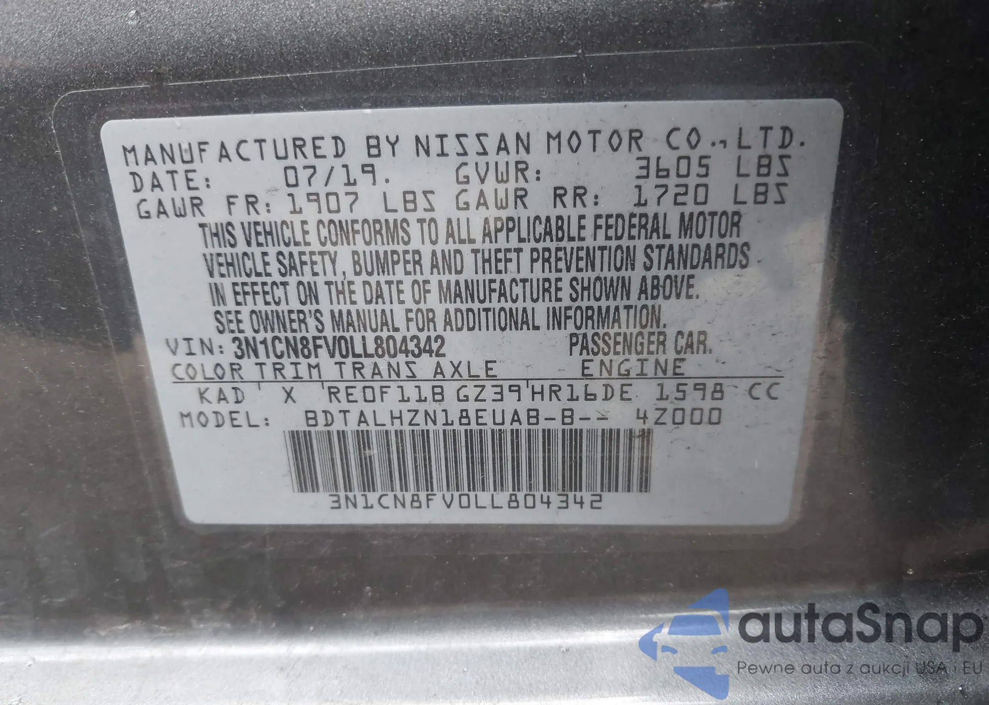 VIN: 3N1CN8FV0LL804342