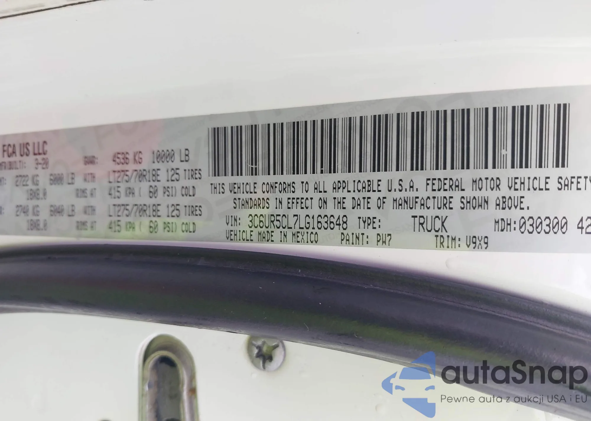 VIN: 3C6UR5CL7LG163648