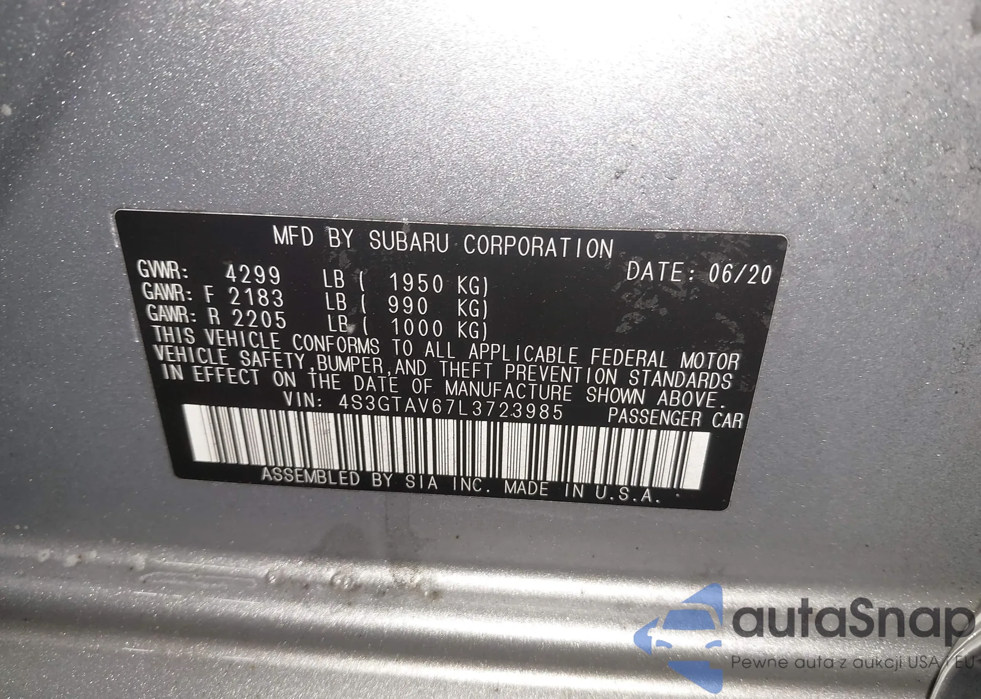 • VIN: 4S3GTAV67L3723985
