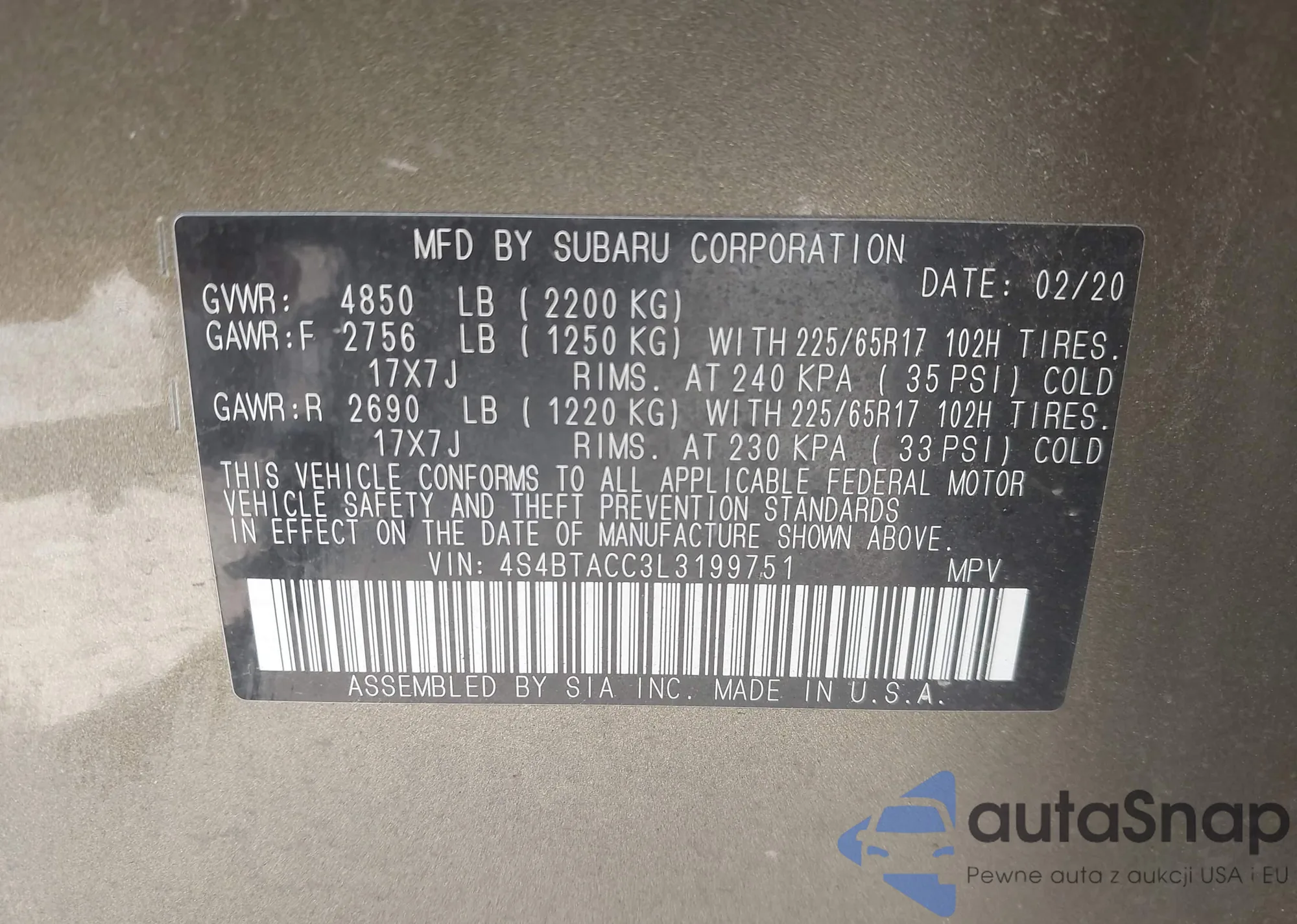 VIN: 4S4BTACC3L3199751