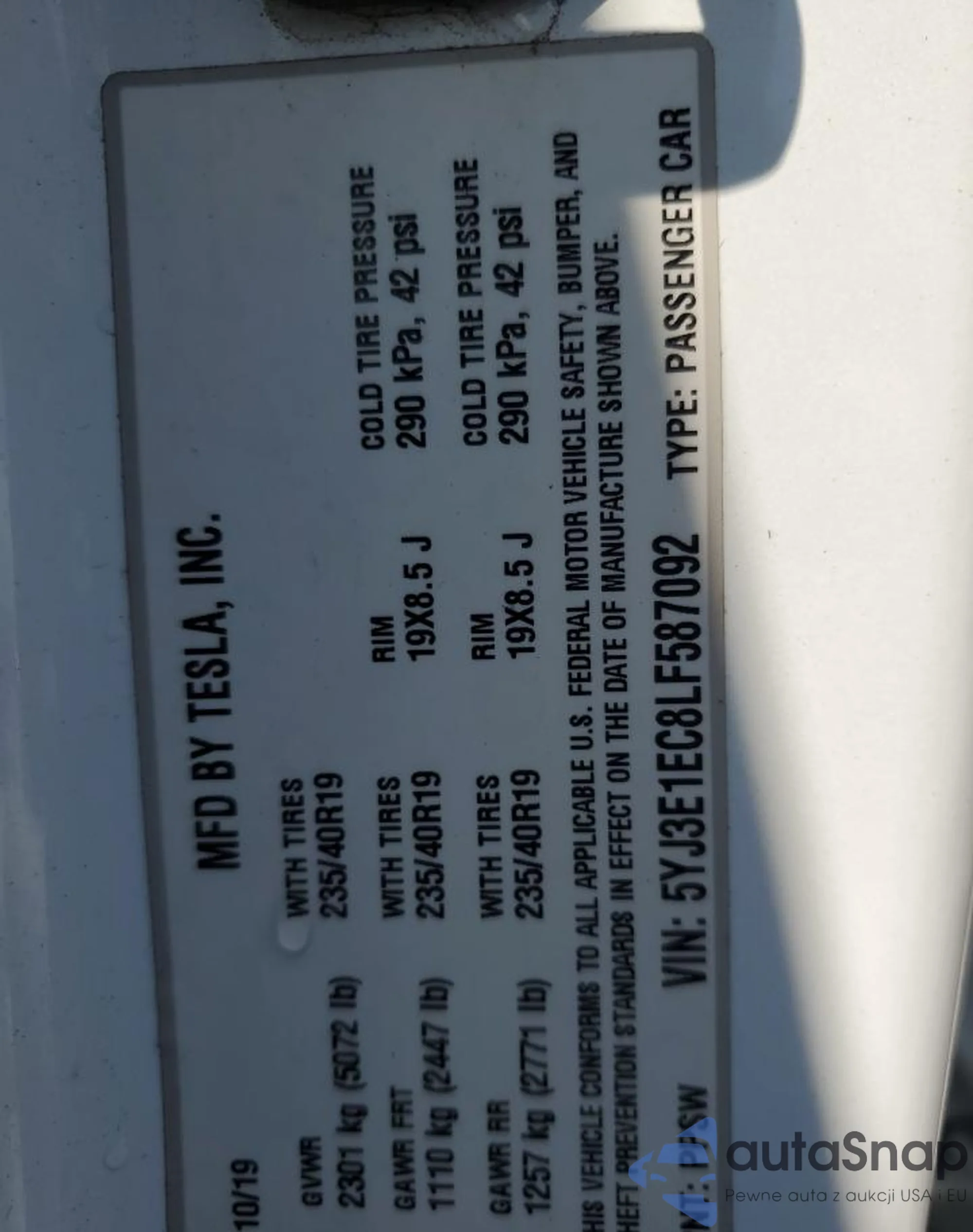 VIN: 5YJ3E1EC8LF587092