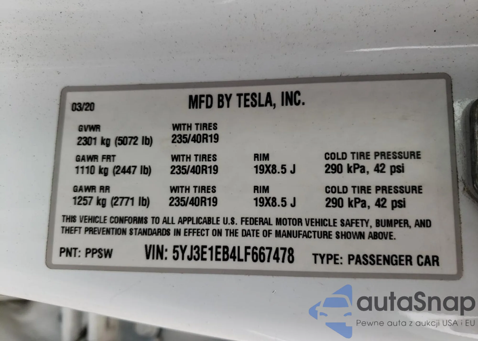 VIN: 5YJ3E1EB4LF667478