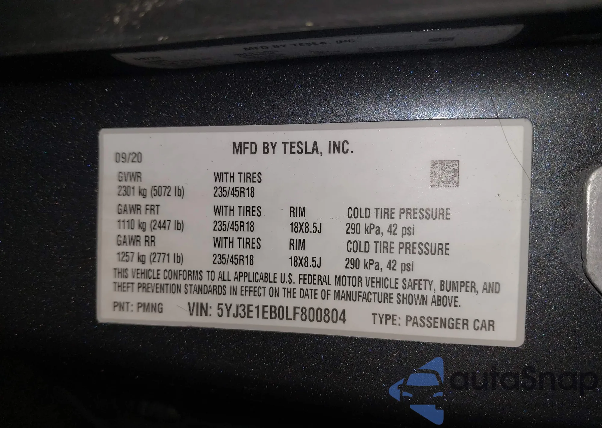 • VIN: 5YJ3E1EB0LF800804