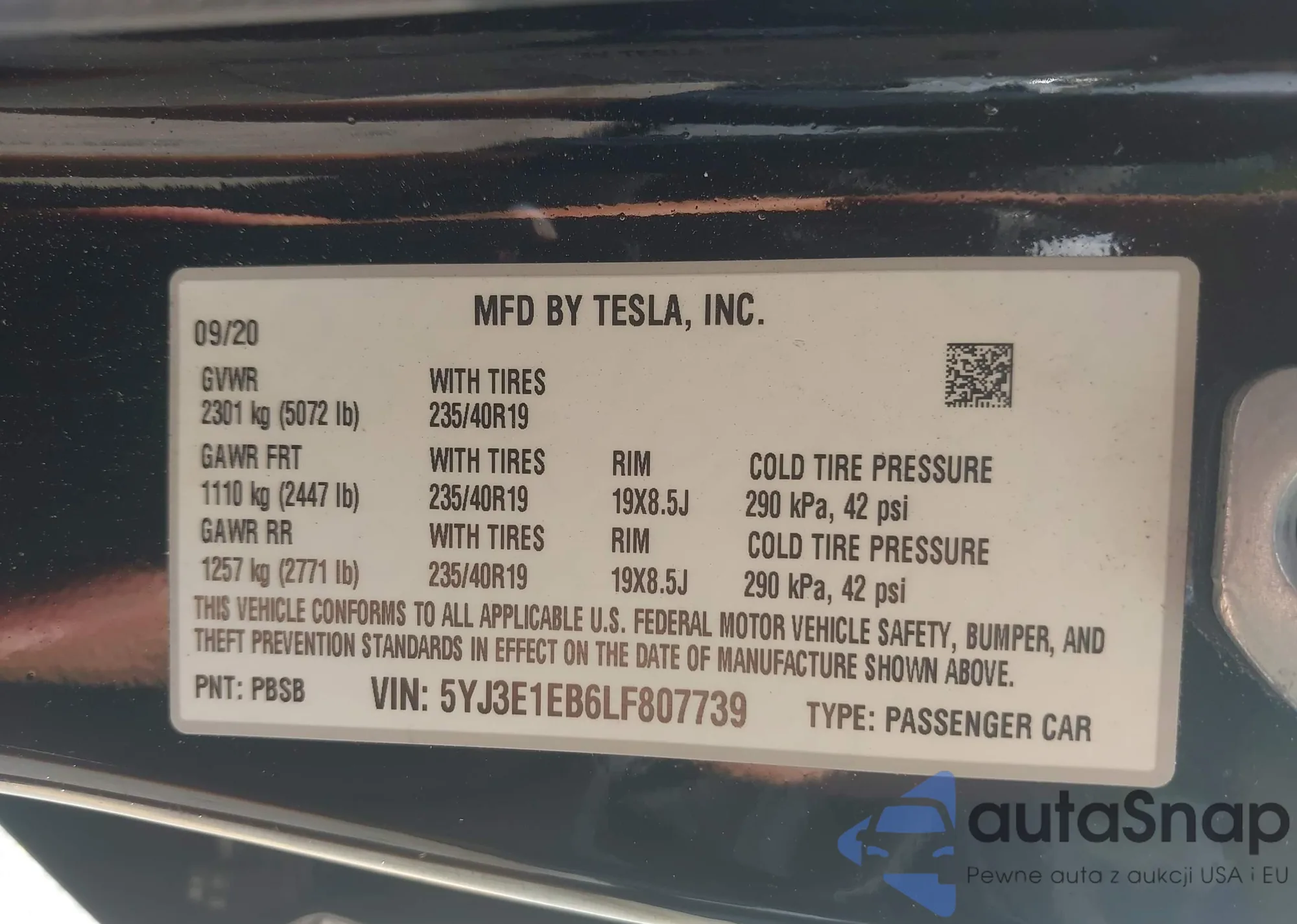 VIN: 5YJ3E1EB6LF807739