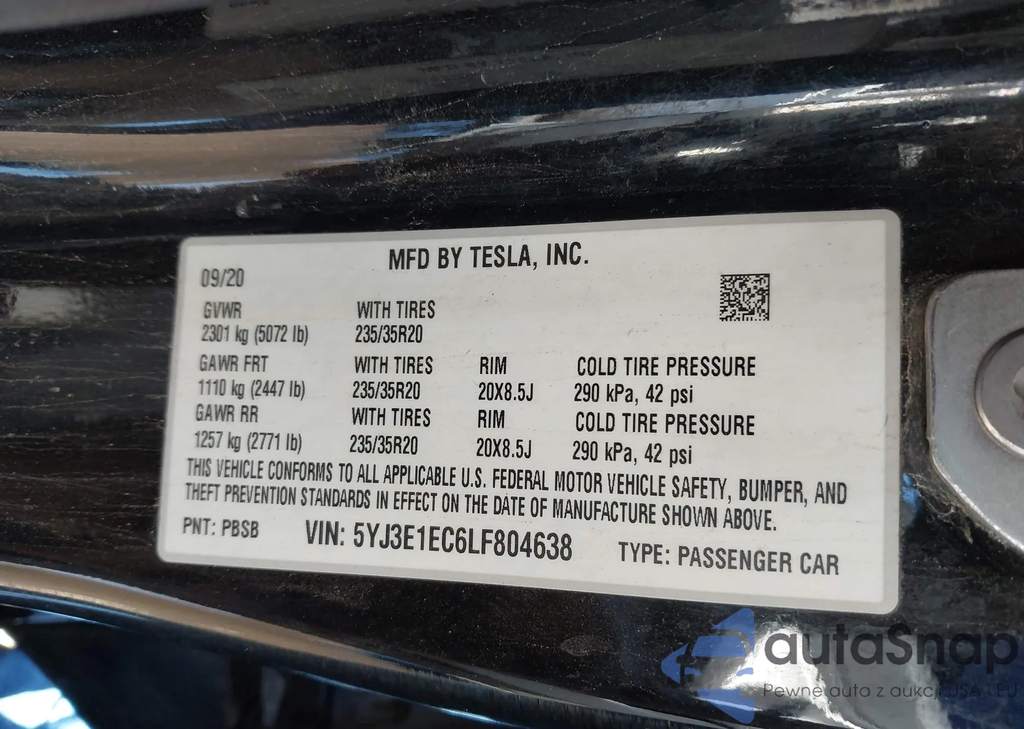VIN: 5YJ3E1EC6LF804638