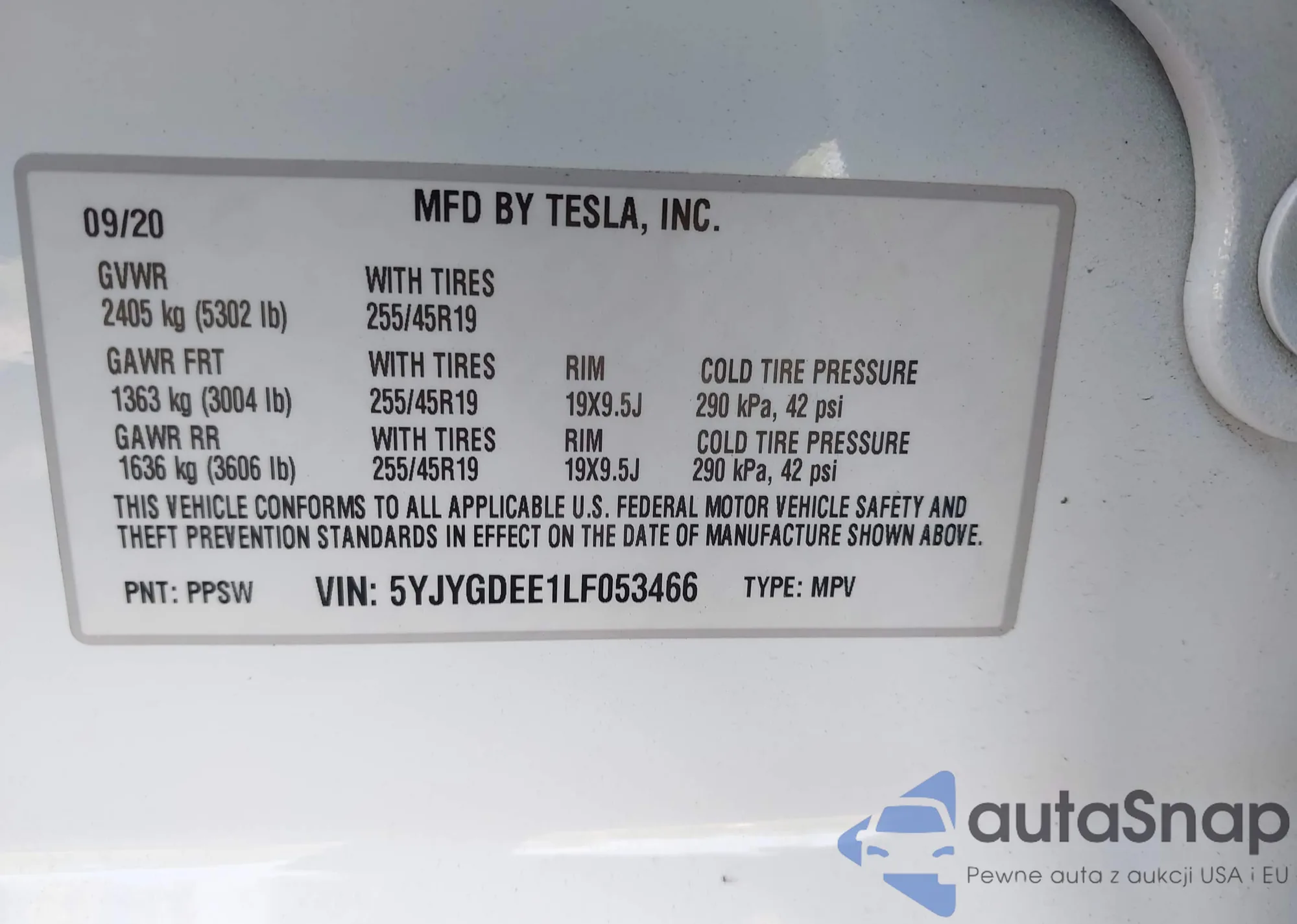VIN: 5YJYGDEE1LF053466