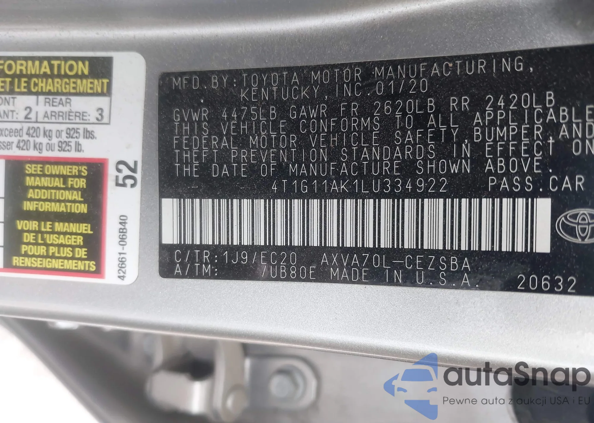 VIN: 4T1G11AK1LU334922