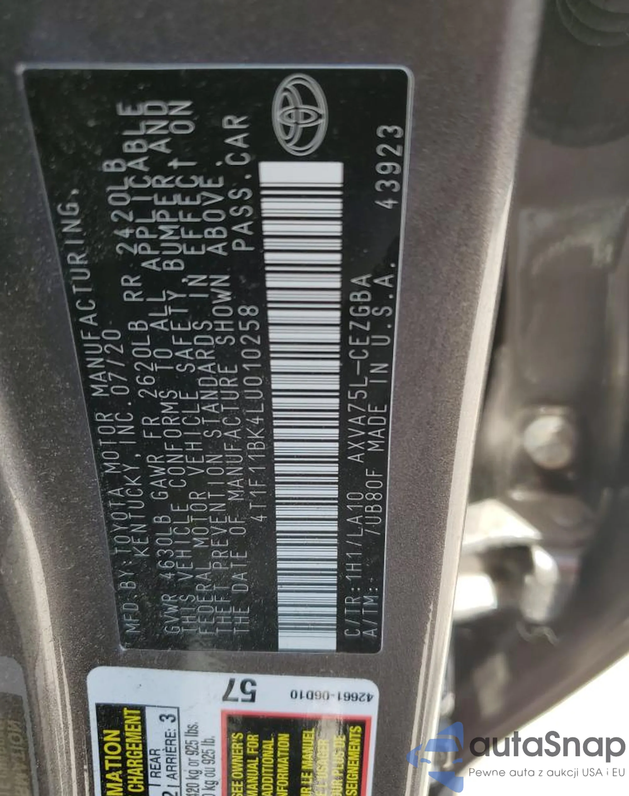 VIN: 4T1F11BK4LU010258