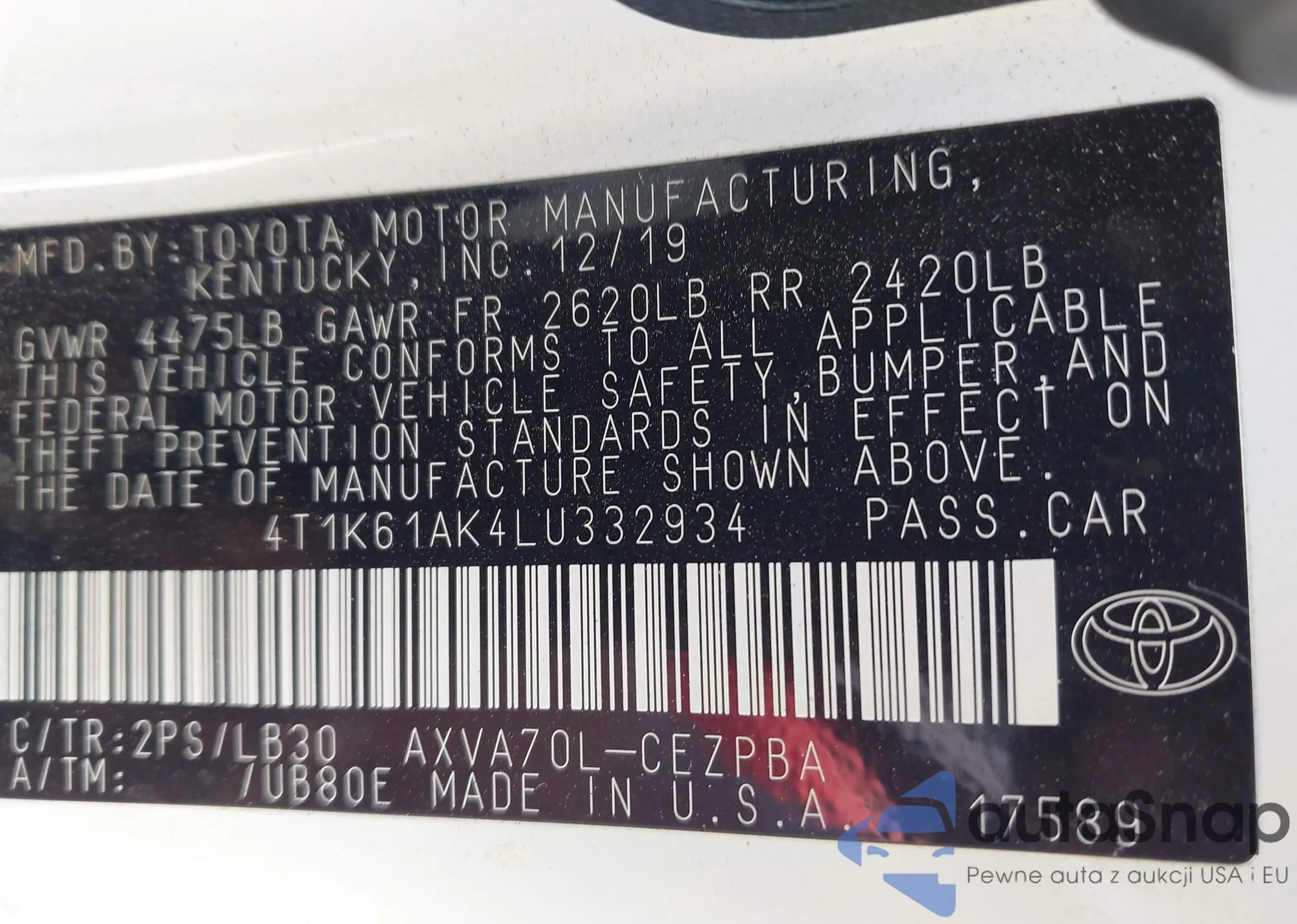 VIN: 4T1K61AK4LU332934