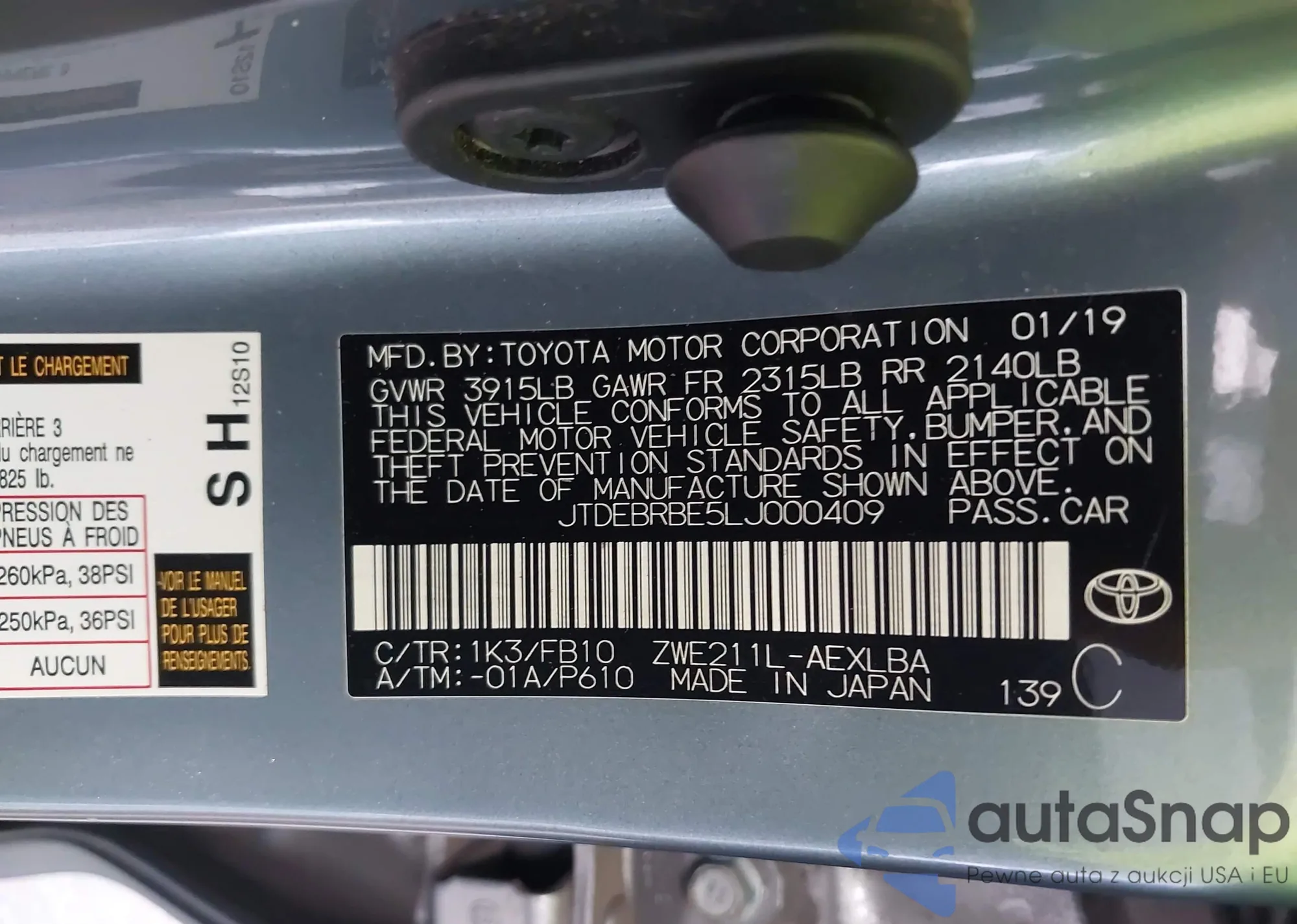 VIN: JTDEBRBE5LJ000409