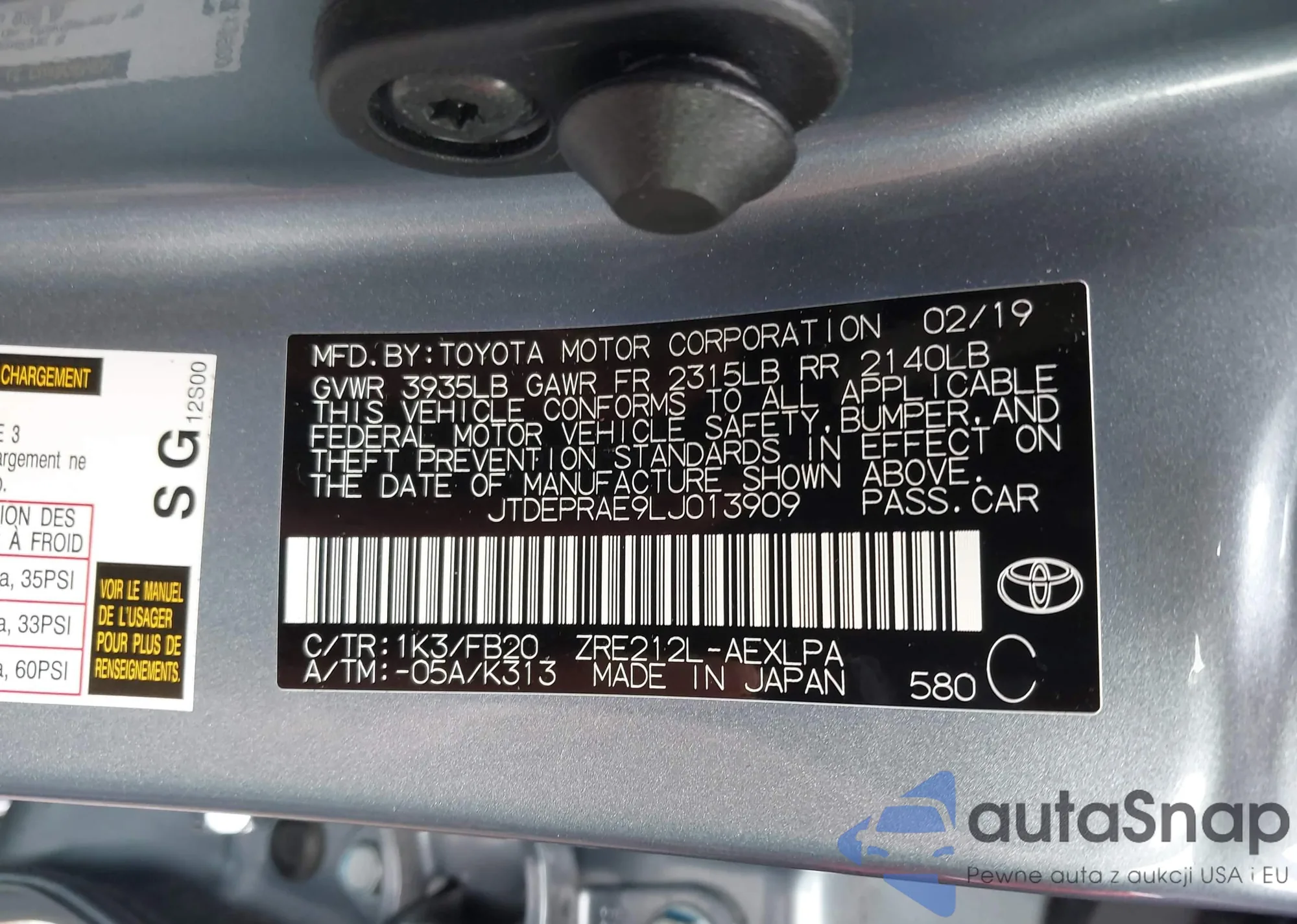 VIN: JTDEPRAE9LJ013909