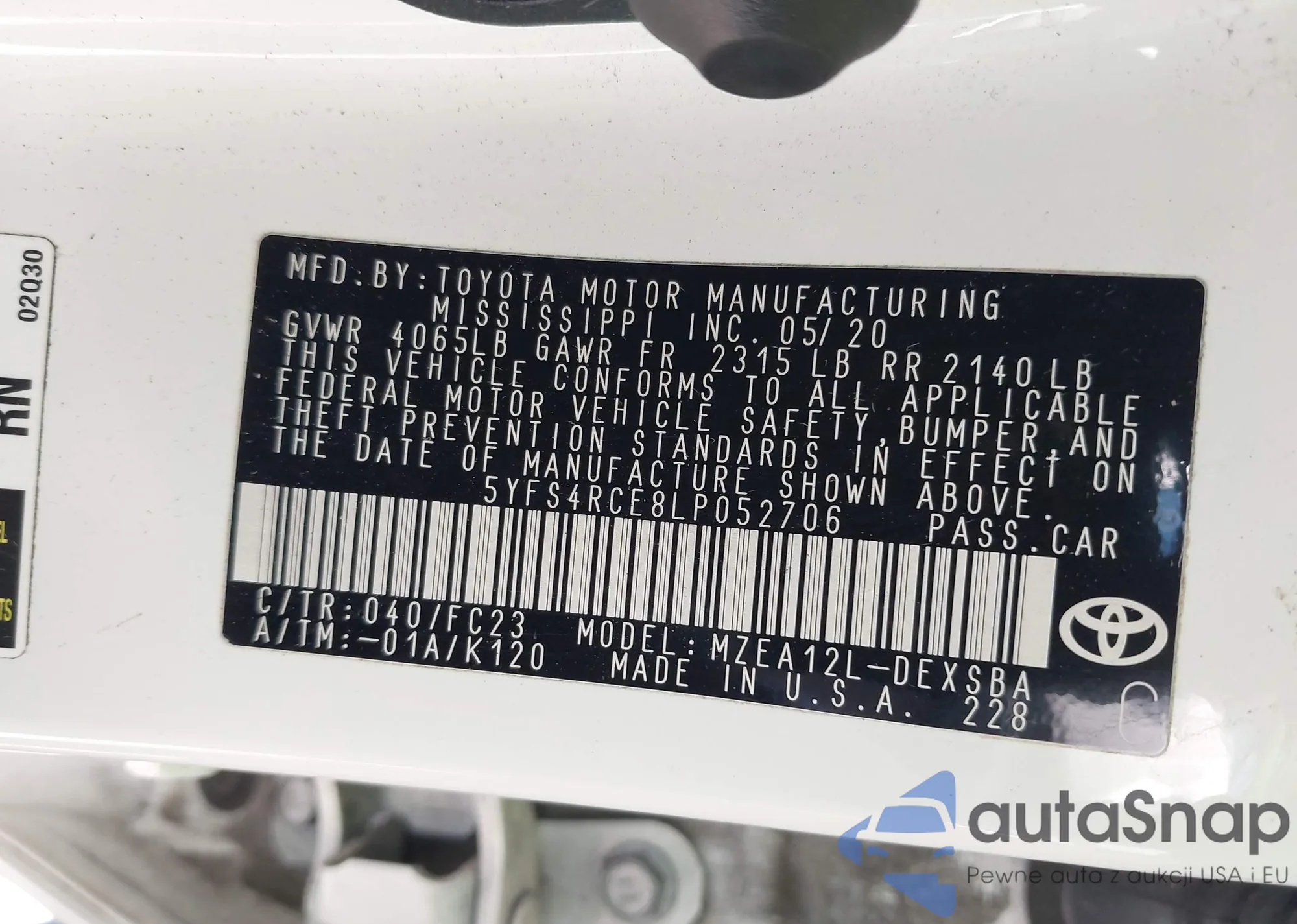 VIN: 5YFS4RCE8LP052706