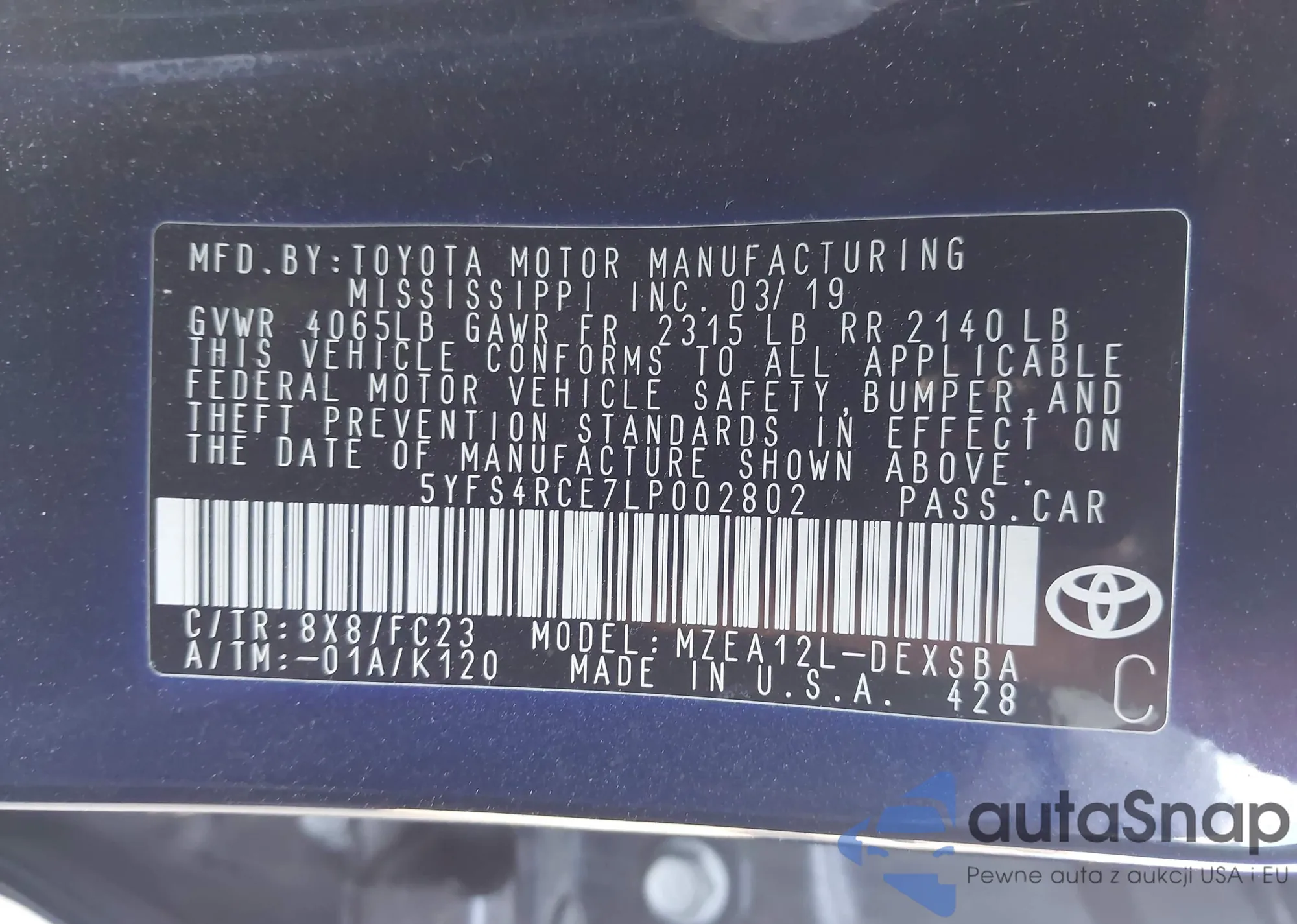 VIN: 5YFS4RCE7LP002802