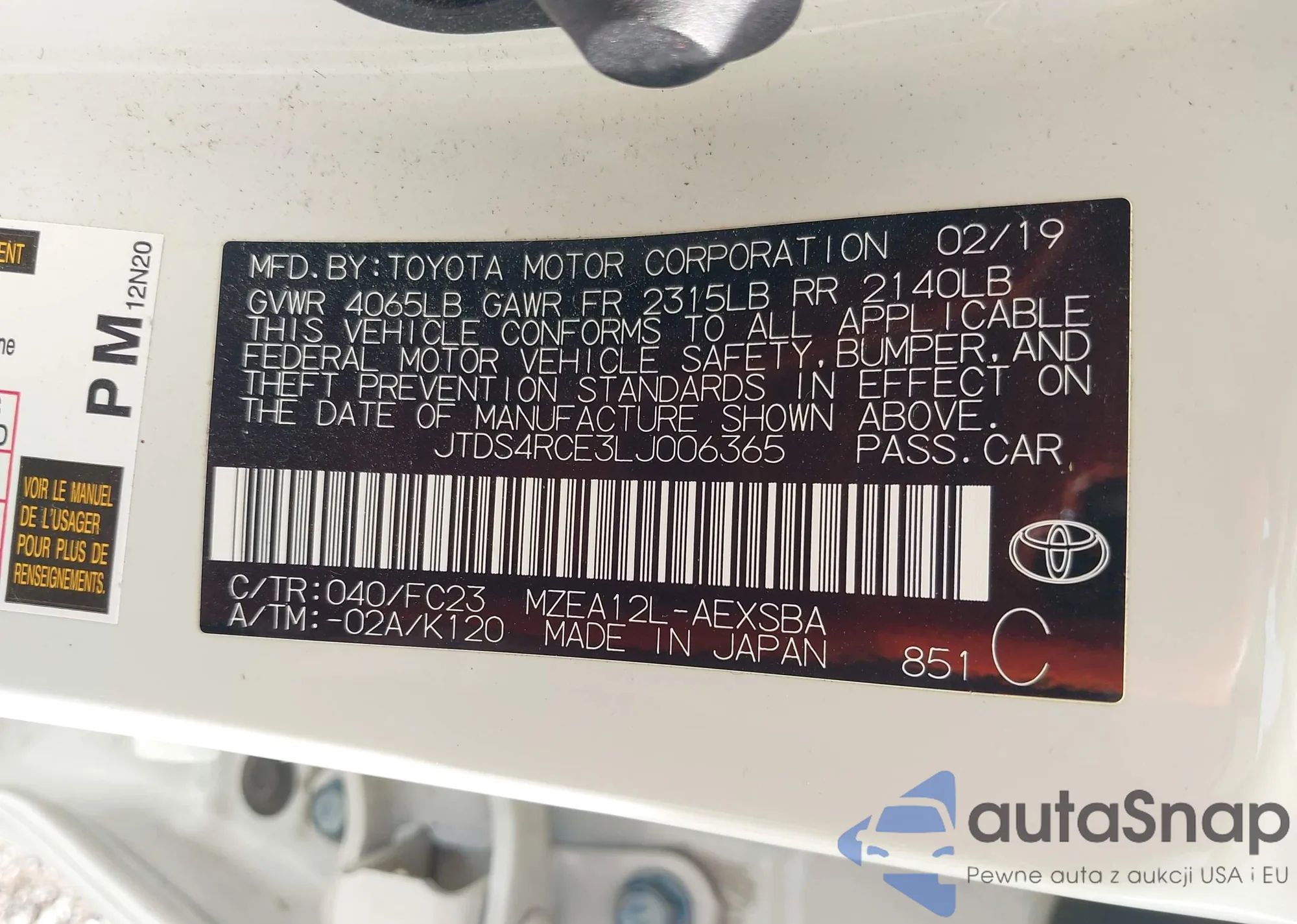 VIN: JTDS4RCE3LJ006365