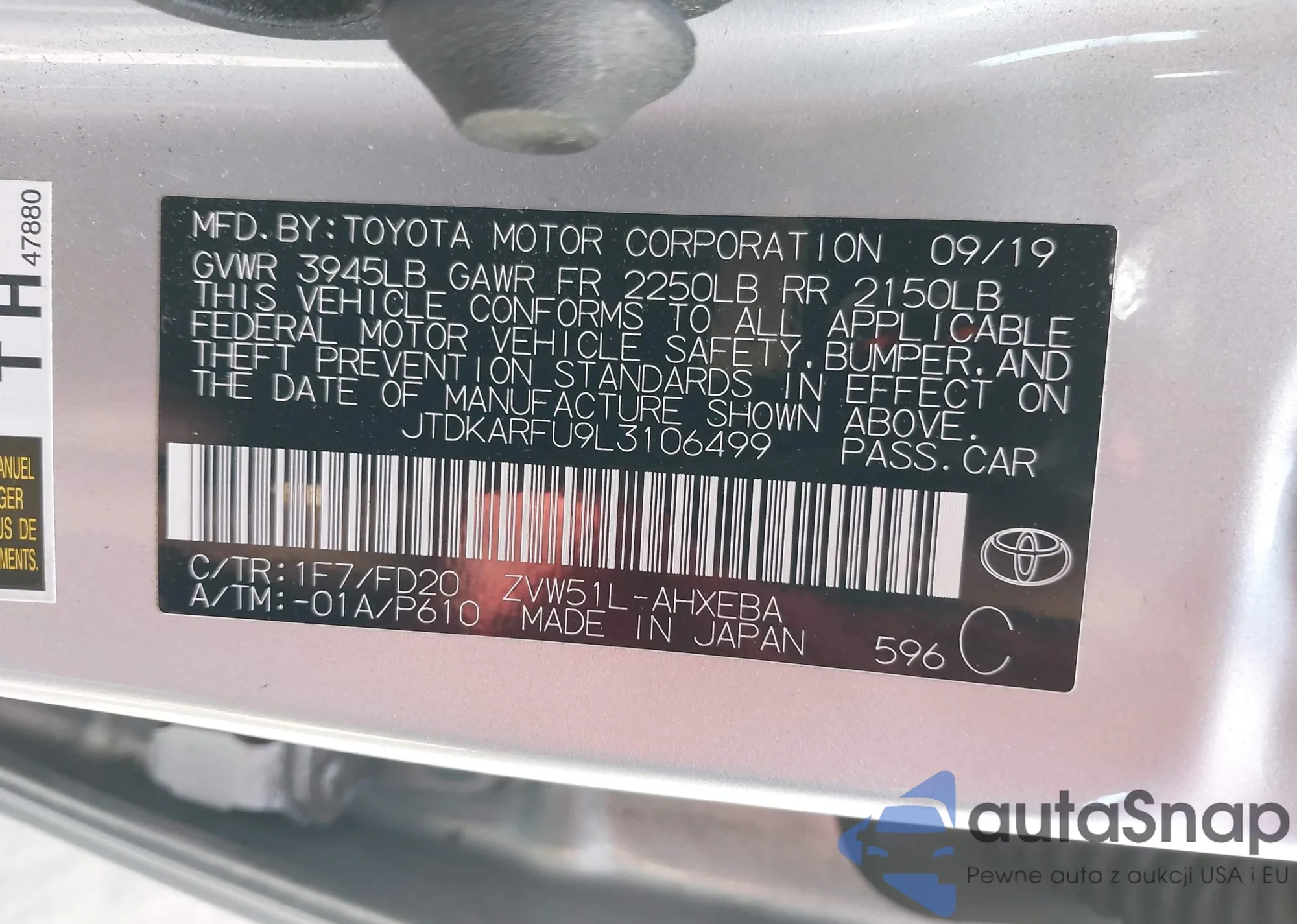 Автомобиль Toyota Prius 2020 (VIN JTDKARFU9L3106499) ранее не участвовал в торгах. Документы чистые, пробег соответствует или ниже среднего по рынку. Продаётся страховой компанией — рекомендуем покупку. Доставка в порт займет около 6–8 недель.