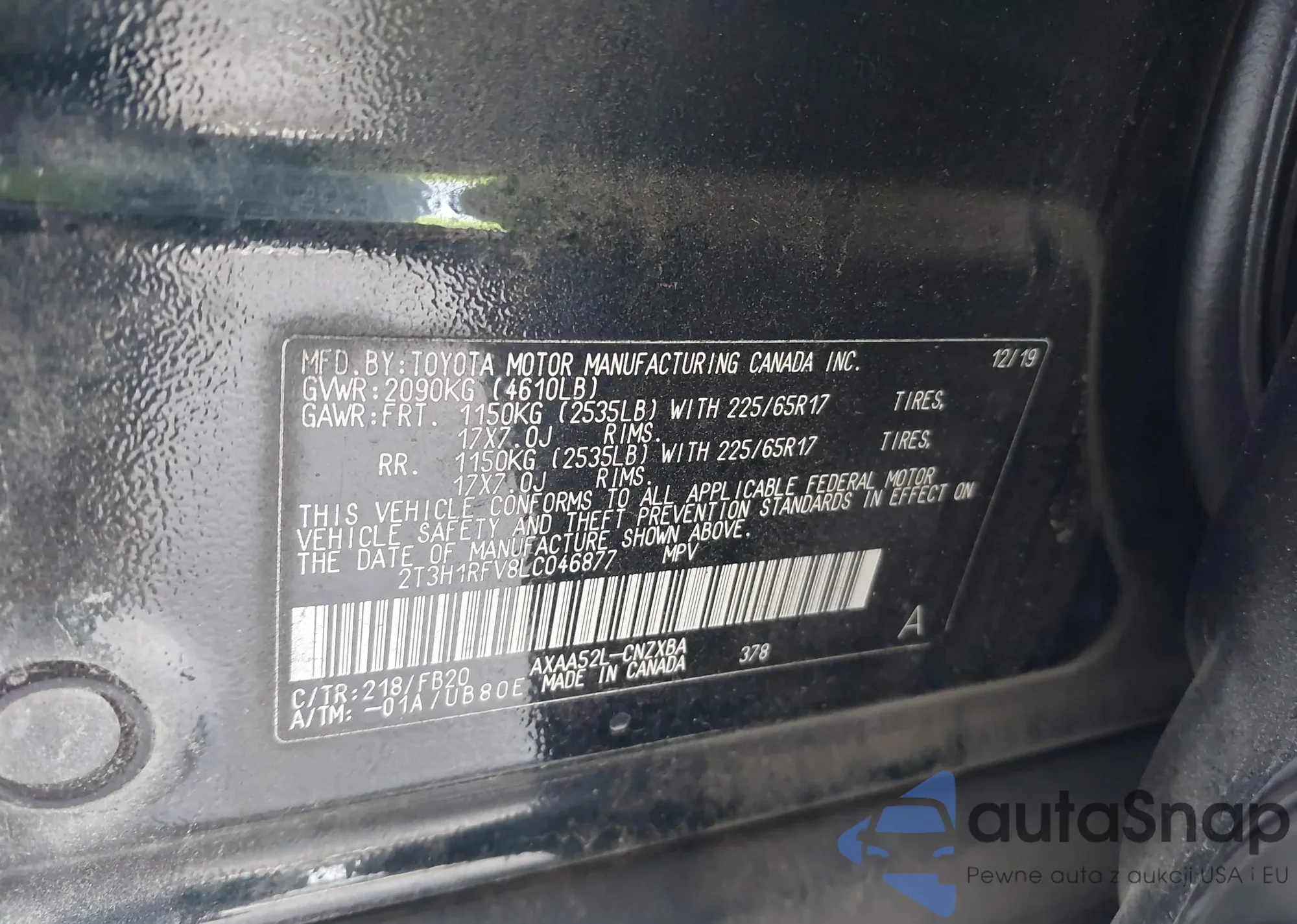 Автомобиль Toyota RAV 4 2020 (VIN 2T3H1RFV8LC046877) ранее не участвовал в торгах. Документы чистые, пробег соответствует или ниже среднего по рынку. Продаётся страховой компанией — рекомендуем покупку. Доставка в порт займет около 6–8 недель.