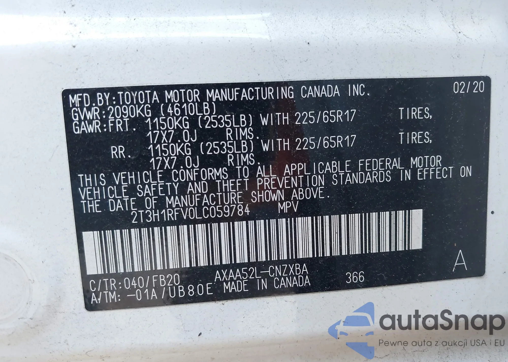 VIN: 2T3H1RFV0LC059784