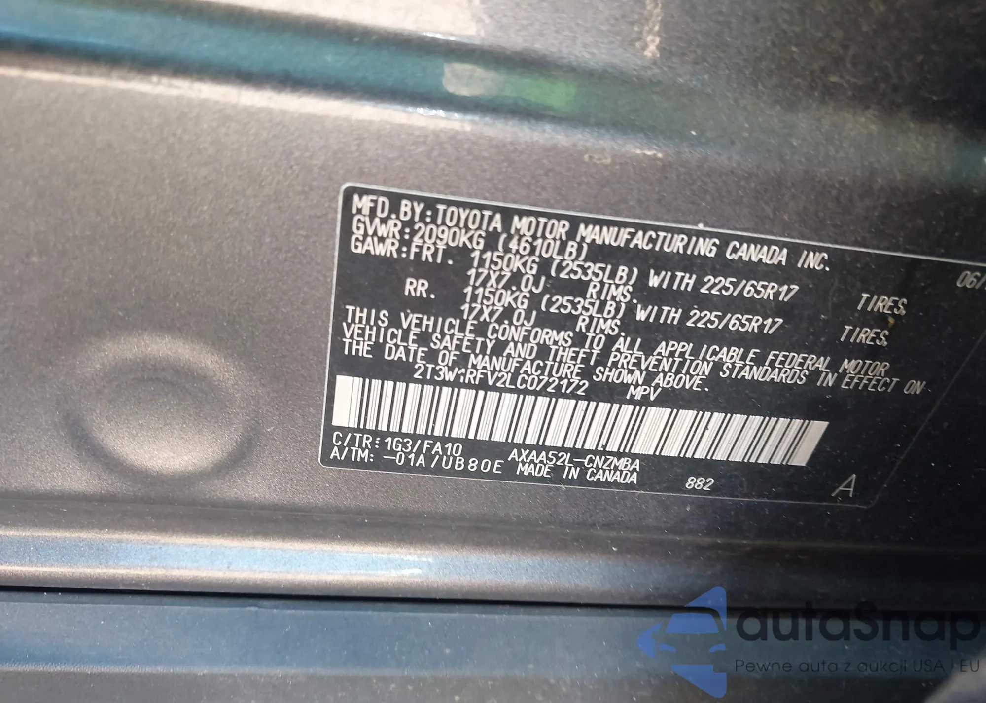 VIN: 2T3W1RFV2LC072172