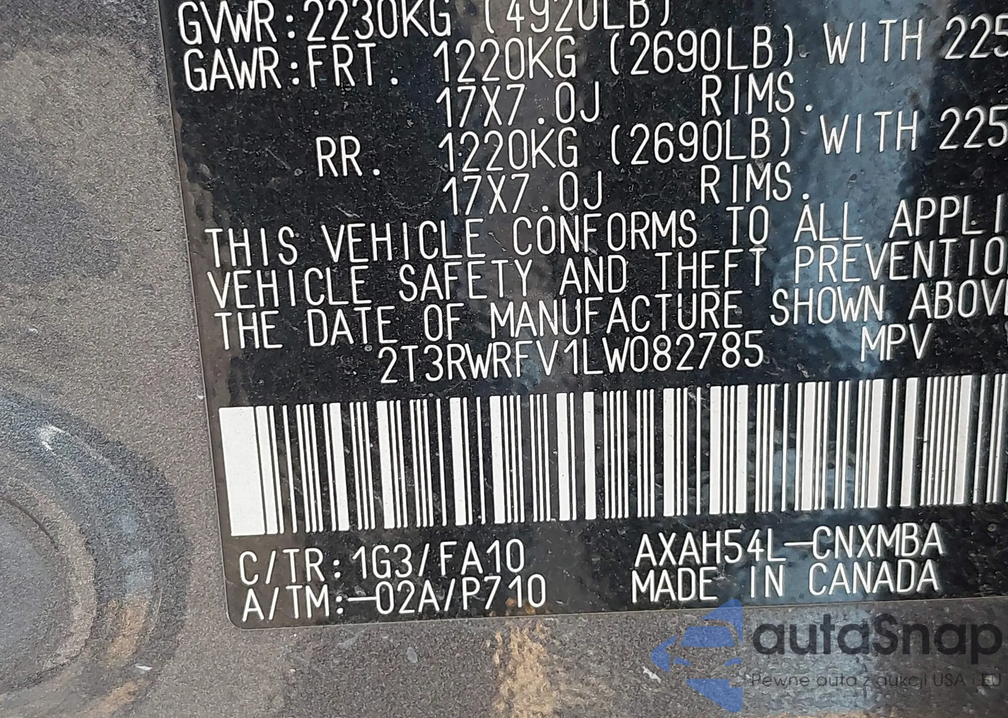 VIN: 2T3RWRFV1LW082785