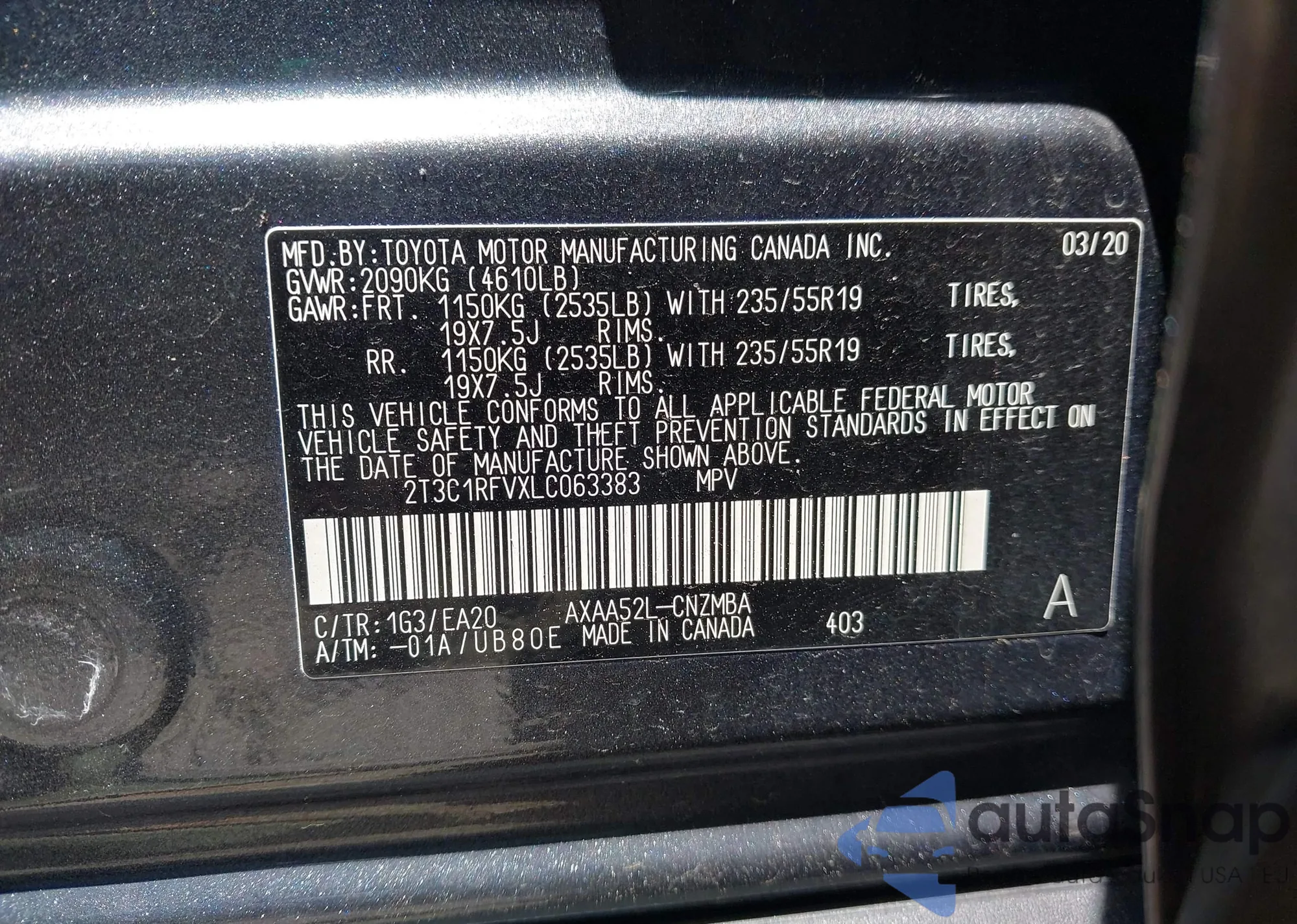 VIN: 2T3C1RFVXLC063383