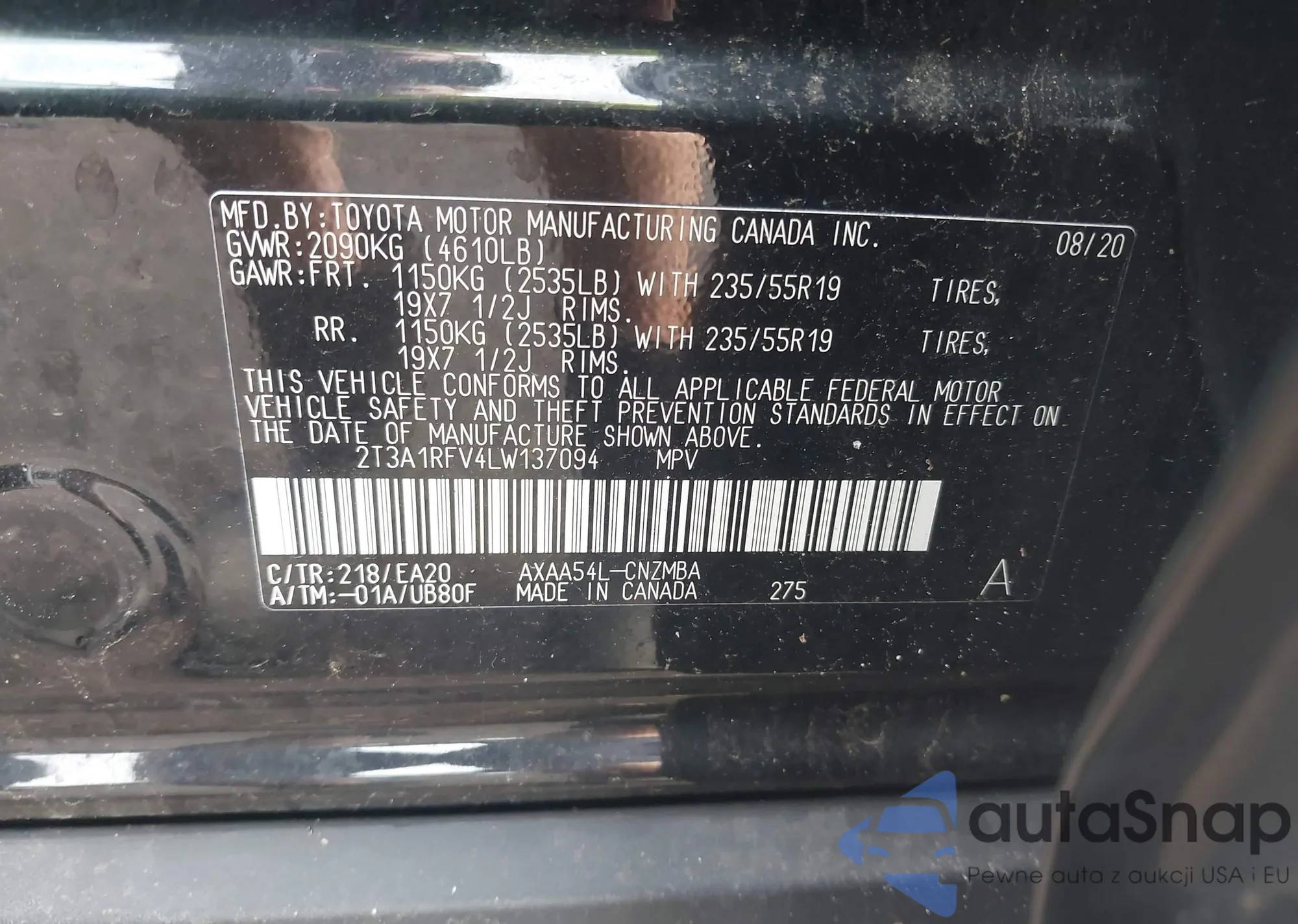 VIN: 2T3A1RFV4LW137094