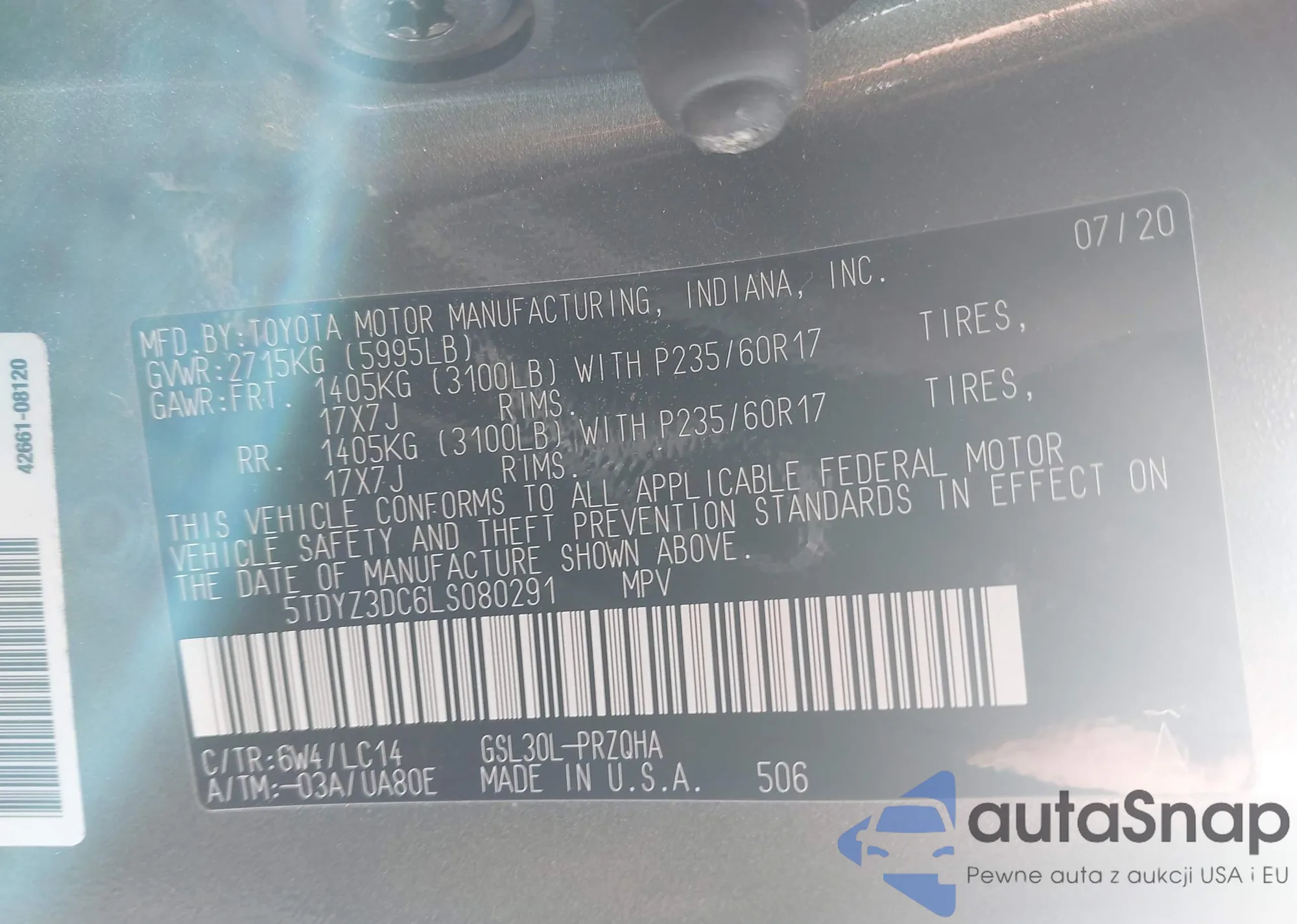 • VIN: 5TDYZ3DC6LS080291