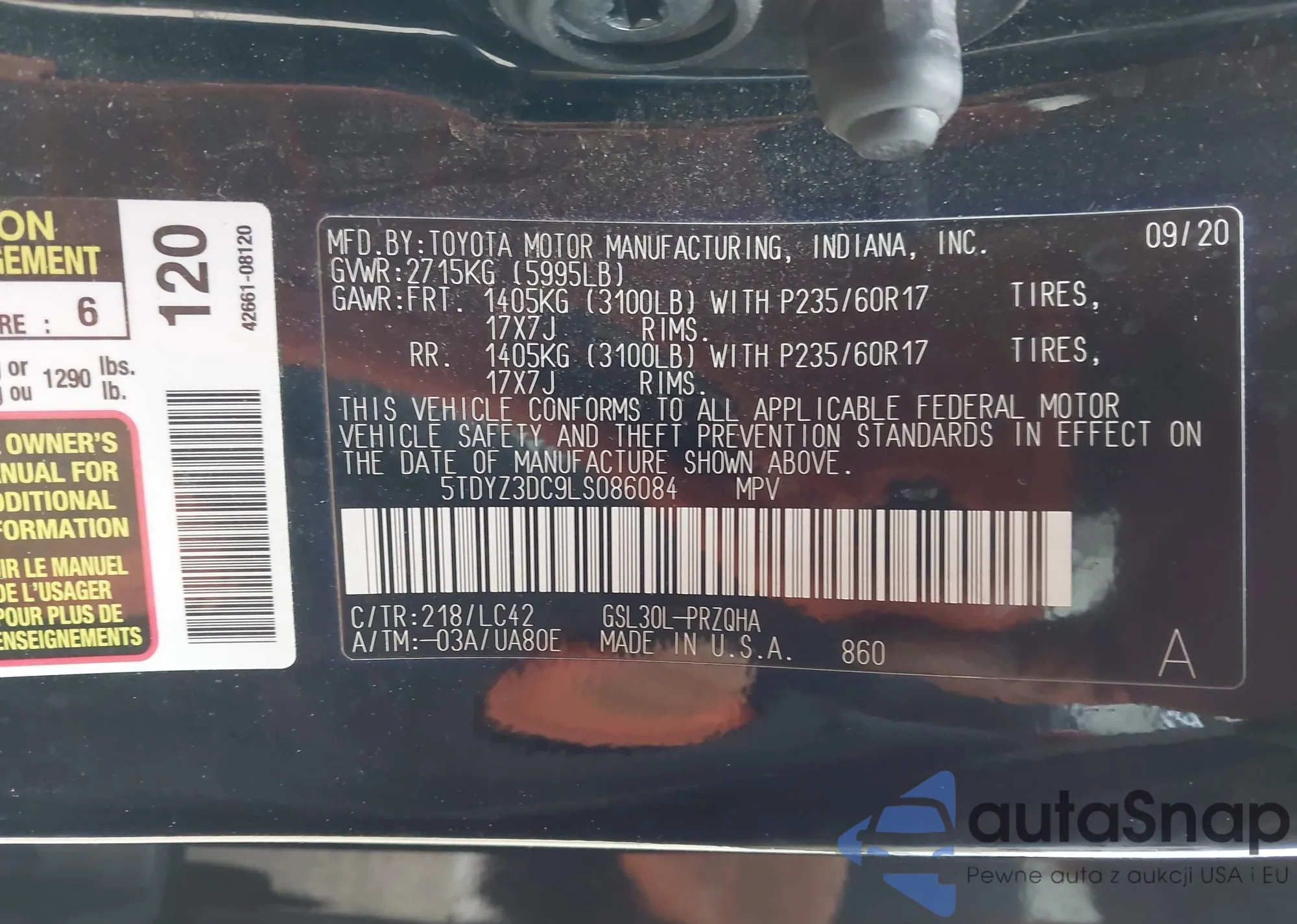 Автомобиль Toyota Sienna 2020 (VIN 5TDYZ3DC9LS086084) ранее не участвовал в торгах. Документы чистые, пробег соответствует или ниже среднего по рынку. Продаётся страховой компанией — рекомендуем покупку. Доставка в порт займет около 6–8 недель.